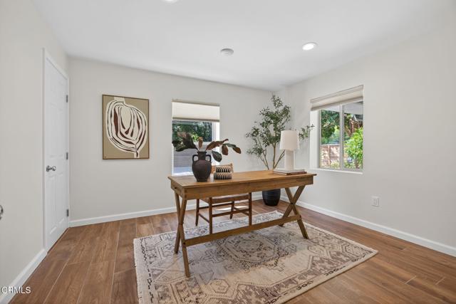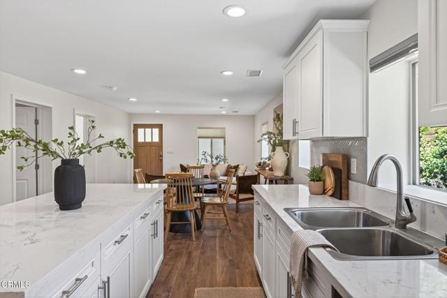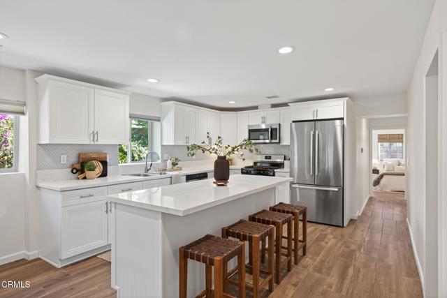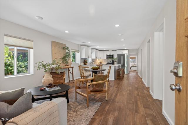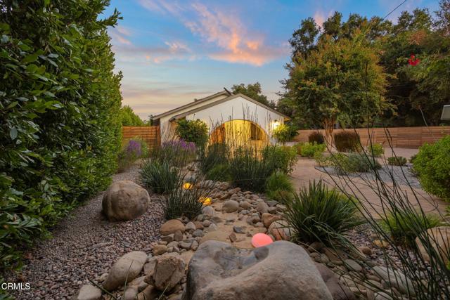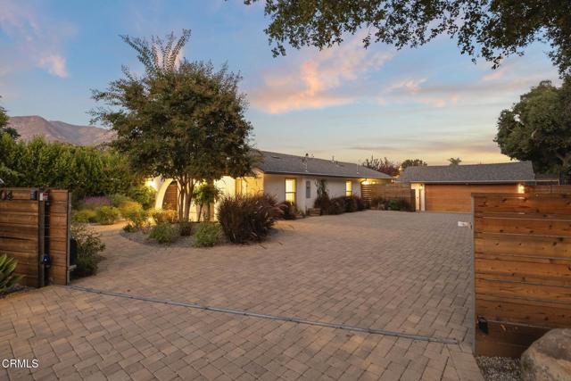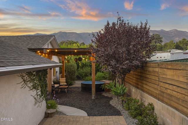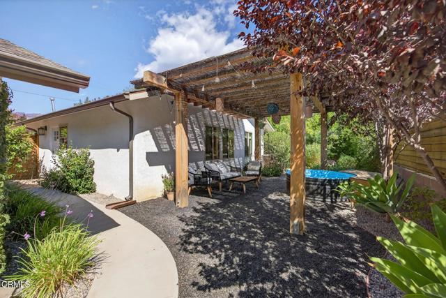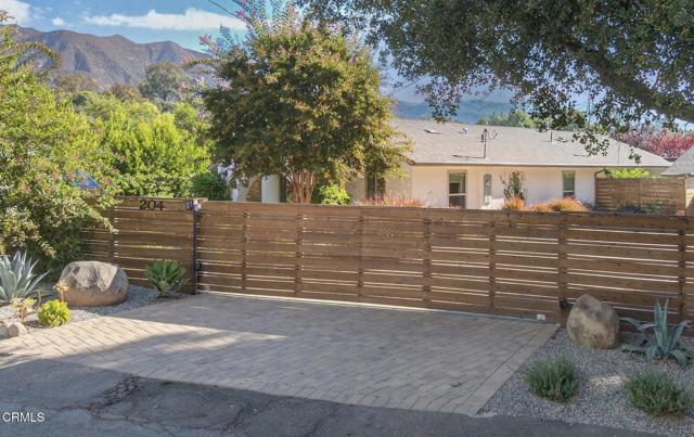 Welcome to your own private retreat tucked away in the vibrant community of Meiners Oaks! This beautifully remodeled, turn-key, 3 bedroom, 2 bath home blends modern comfort with Ojai charm, offering 1,456 sq. ft. of thoughtfully designed living space.Step inside to a bright, airy interior where dual-paned windows invite in natural light, beautifully complemented by recessed lighting in every room. At the heart of the home, the open-concept kitchen showcases sleek modern cabinetry, stainless steel appliances, and durable quartz countertops, anchored by a spacious island with abundant storage. Just off the kitchen, a well-appointed laundry room with custom cabinetry adds both style and convenience. The secluded primary suite is a true retreat, complete with an expansive walk-in style closet and an en-suite bath boasting a double vanity & generous shower with a full-width bench seat.The fully fenced property is a private sanctuary, offering plenty of usable space for entertaining or tranquil relaxation framed by vibrant crape myrtle trees and lush landscaping creating a sense of privacy and serenity. Unwind in Ojai's sunshine under the backyard pergola or take a dip in a unique Tipsy Tanks plunge pool--perfect for cooling off on warm afternoons. A solar-powered gated driveway provides secure parking for multiple vehicles, including RV parking for added flexibility. Notable upgrades include luxury System Pavers walkways and driveway, a security system, newer roof and HVAC system, ensuring convenience and peace of mind. Located just blocks away from gourmet restaurants, cafes, galleries, hiking trails, and schools, you'll enjoy all of Ojai's cultural events, while quick access to Highway 150 makes trips to Santa Barbara a breeze. Come see this beautiful home which merges functionality with charm, making it an ideal haven for anyone looking to plant roots in the vibrant community of Ojai.