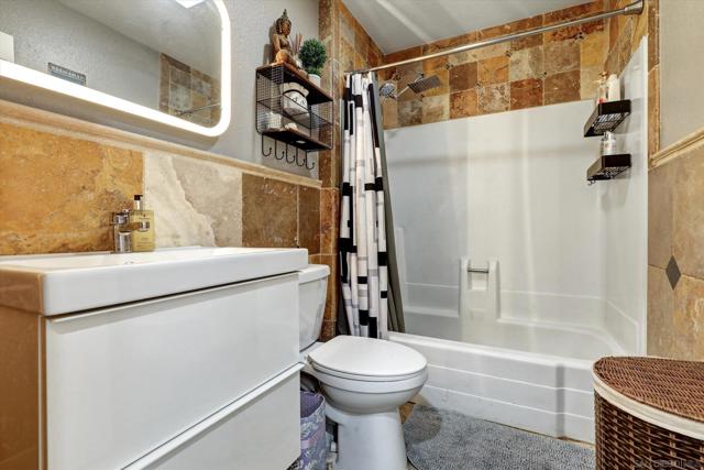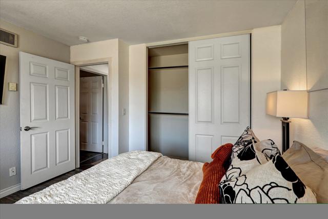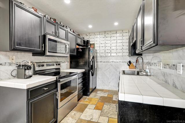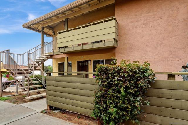 Investor Alert & First-Time Buyer Opportunity! LOWEST-PRICED 2-BEDROOM CONDO WITH GARAGE in the entire complex! Check out the 3-D Matterport! Discover exceptional value in this tastefully upgraded 2-bedroom, 1-bath upper-level condo located in a desirable, well-maintained Escondido community. This move-in ready home offers private stairs to a covered patio and entry, creating a welcoming and private space to unwind. Inside, enjoy travertine, wood, and laminate flooring, classic dark wood cabinetry, and white tile countertops that provide a clean and timeless aesthetic. The spacious primary bedroom includes a walk-in closet, while both bedrooms feature generous storage. Additional features include dual-pane windows, wall A/C, and access to a sparkling community pool—perfect for warm San Diego days. The home also includes a detached 1-car garage, and the HOA covers water, keeping ownership costs low. With its prime location near schools, shopping, dining, and major freeways, this condo offers both comfort and investment potential. Whether you’re looking to start building equity or add to your portfolio, this is the best-priced opportunity in the area. Check out the photos and location today and see why it is one of Escondido’s smartest buys!
