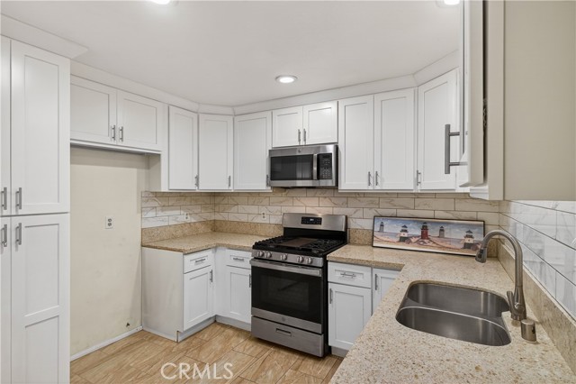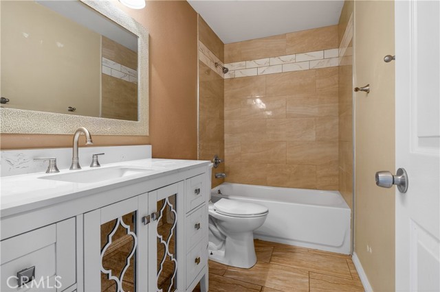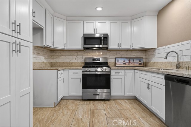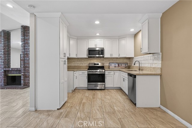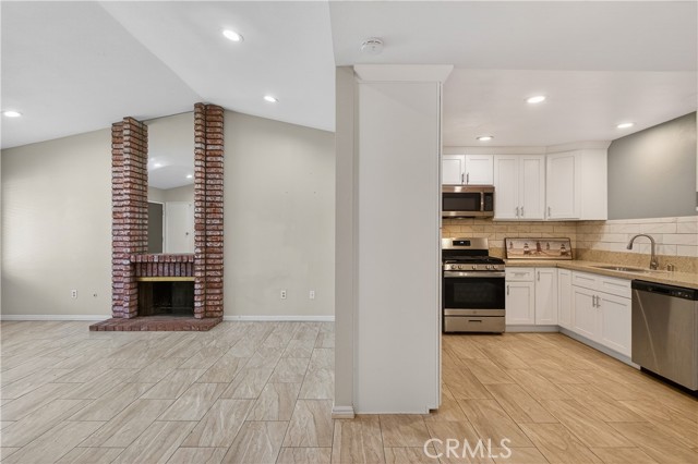 Location, location and location. Beautifully upgraded single-story residence located on a quiet cul-de-sac in a desirable Ontario neighborhood, conveniently close to shopping, dining, major transportation routes, and just minutes from Rancho Cucamonga. This thoughtfully enhanced home features a bright and open floor plan with extensive interior improvements throughout. Upon entry, you are welcomed by a spacious living area with a cozy fireplace, complemented by updated dual-pane windows, new interior and exterior paint, and a combination of tile and laminate flooring that creates a clean and modern aesthetic. The kitchen has been tastefully updated with white cabinetry, subway tile backsplash, upgraded countertops, recessed lighting, and newer appliances, along with a pull-down faucet and a dining area accented by a contemporary chandelier. Bathrooms have been upgraded with newer vanities, quartz-style countertops, updated fixtures, and refreshed tile finishes, offering a cohesive and modern design. Additional interior improvements include updated doors, window coverings, and flooring throughout. Per public records, the property is a single-family residence. The current layout includes a front living area with 3 bedrooms and 2 bathrooms, along with an additional rear living space featuring 1 bedroom, 1 bathroom, and a kitchenette, providing flexible living arrangements. The exterior offers a spacious backyard ideal for outdoor enjoyment, complete with a covered patio, landscaped grounds, irrigation system, and storage shed. Additional features include an attached two-car garage, side yard parking with potential for RV access, and recently installed new wooden fence in back and south side of the house.