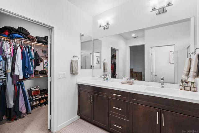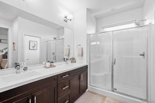 Welcome to 2075 Tango Loop #1, a beautifully upgraded home in the heart of Millenia. Built in 2019, it blends modern design with everyday comfort and function. The open-concept great room flows naturally into a contemporary kitchen featuring shaker cabinetry, granite countertops, a large island, and stainless steel appliances. High ceilings, upgraded flooring, and modern fixtures, add a polished touch throughout. A convenient powder bath on the main level makes hosting easy. Upstairs, the spacious primary suite includes a walk-in closet and spa-like bath with dual vanities and a glass-enclosed shower. Secondary bedrooms and baths carry the same clean, timeless finishes, while the landing at the top of the stairs offers a convenient flex space. A dedicated laundry room and direct-access two-car garage add everyday convenience. Step outside to a private patio, perfect for morning coffee or evening wine. Community amenities include a sparkling pool and hot tub, and access to scenic neighborhood parks, extending your living space outdoors. Set within Chula Vista’s sought-after Millenia community, this home is close to top-rated schools, parks, shopping, and dining-everything you need just outside your door.