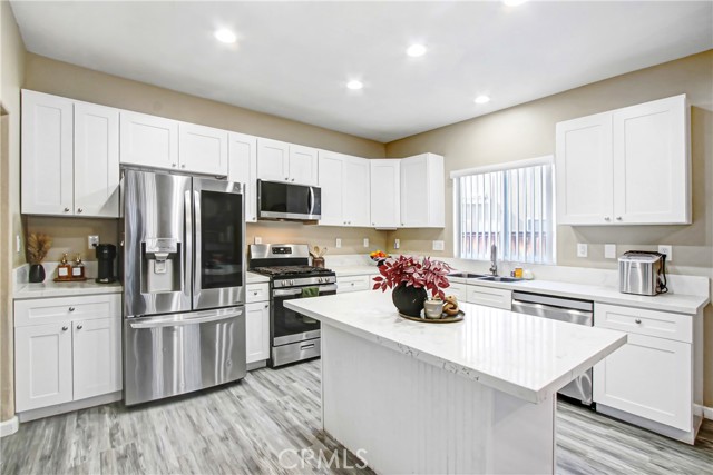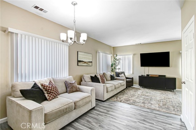 Welcome to this beautifully remodeled 6-bedroom home tucked away on a quiet cul-de-sac in the heart of San Jacinto, just off Sanderson. With fresh upgrades throughout and a versatile floor plan, this home offers the space and style today’s buyers are looking for. Step inside to a formal entry leading to a spacious living and dining room combination, filled with natural light. The entire home features luxury vinyl plank flooring, two-toned interior paint, updated fixtures, new window coverings, and mostly new interior and closet doors. The stunning, redesigned kitchen showcases white shaker-style cabinetry, quartz countertops, a center island with breakfast bar seating, and stainless steel appliances including range, microwave, and dishwasher. The kitchen opens seamlessly to the family room with a cozy fireplace—creating the perfect gathering space. This expansive layout includes 6 total bedrooms, with one bedroom and full bathroom conveniently located downstairs—ideal for guests or multigenerational living. Upstairs, you’ll find four generously sized secondary bedrooms that share a hall bath, along with a spacious primary suite featuring south- and east-facing windows, a HUGE walk-in closet, dual sinks, privacy toilet, a new shower, and a separate soaking tub. Upstairs laundry hookups add everyday convenience. Additional highlights include a two-car direct access garage with RV parking and a backyard that is a blank canvas, seller paid over 15k for RV concrete/ fencing , but it is ready for your vision, whether it’s a pool, outdoor kitchen, or lush garden retreat. A rare opportunity to own a move-in ready 6-bedroom home in a desirable cul-de-sac location.