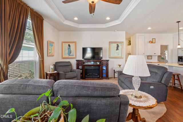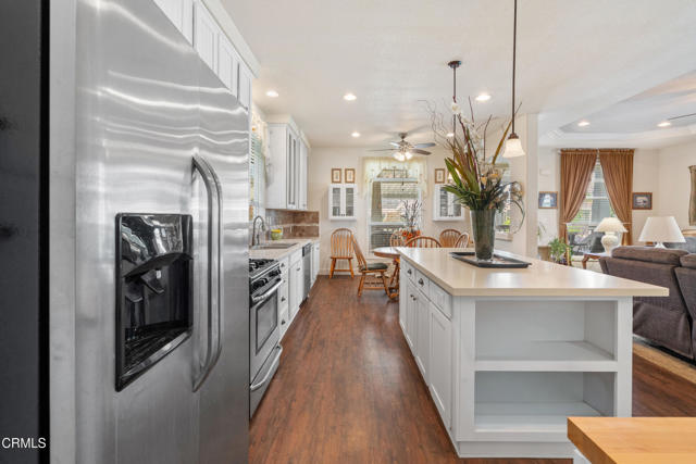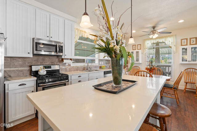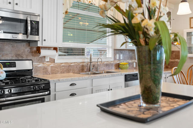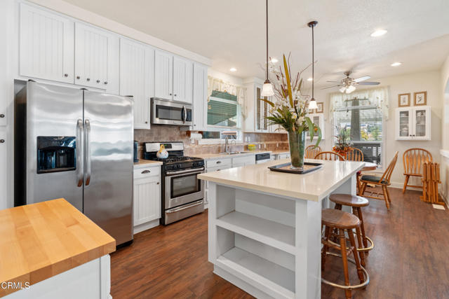 Built in 2016, this exceptional three-bedroom, two-bath manufactured home in the desirable BuenaVentura 55+ Community truly stands out. Spanning 1,647 sq. ft., it offers soaring ceilings, an open-concept layout, and a spacious kitchen with an oversized center island--perfect for both everyday living and entertaining.This property features a rare two-car side-by-side carport conveniently located in front, providing the comfort and functionality of a traditional garage. Its unique placement on a curve in the road allows for an expanded yard--beautifully landscaped with lawn and wraparound outdoor space. Whether you enjoy gardening, al fresco dining, or simply relaxing in the fresh Ventura breeze, this yard offers the perfect setting.Meticulously maintained and tastefully designed, this home combines modern style, exceptional condition, and one of the largest lots in the community--a truly rare opportunity in East Ventura.
