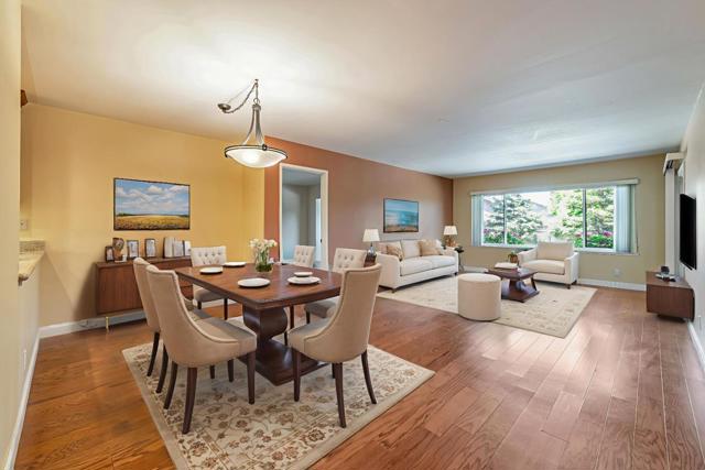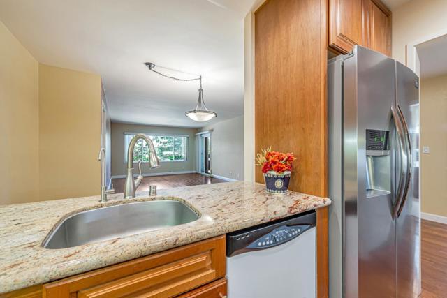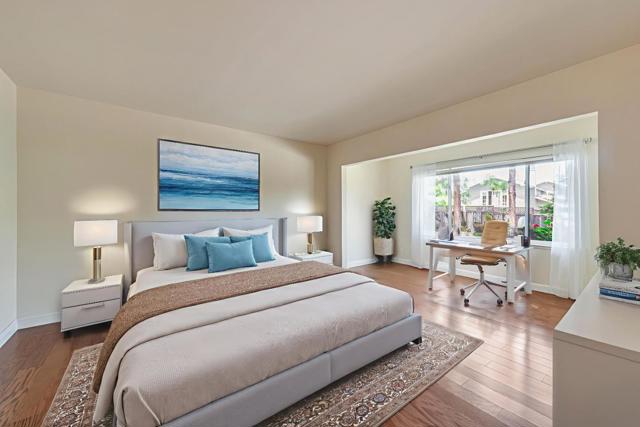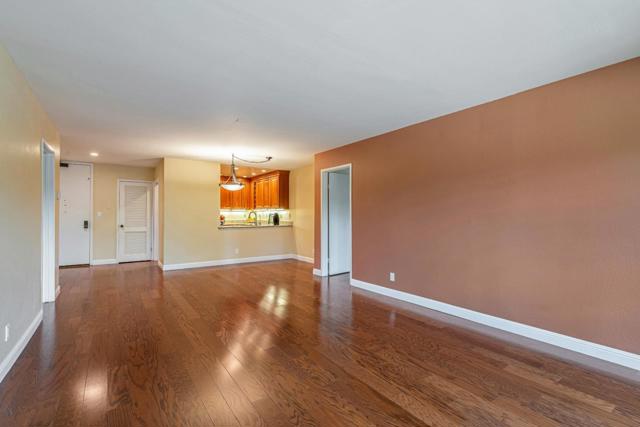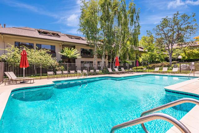 sought after stretch unit at Menlo Commons located on the first floor-updated and move in ready-open plan living room, dining area, and kitchen each painted in a different color-beautiful engineered wood flooring throughout the unit-for the cook, a well equipped kitchen updated with stainless steel appliances, recessed lighting, granite countertops, ample cabinetry-primary bedroom has separate sitting area or small desk area- large walk-in closet with built-in cabinetry-ensuite bathroom includes new walk-in shower and laundry closet-enjoy views of trees and million dollar homes from the balcony off living room on a sunny afternoon-second bedroom shares balcony and is connected to a second updated bathroom with extra closet space and full size washer/dryer-living room and bedroom are virtual photos-active 55+ community offers: pool/spa heated year round, resident lounge and full kitchen, exercise room-complex is near Stanford University, Stanford Hospital, Stanford and Sharon Heights Shopping Centers-easy access to I-280
