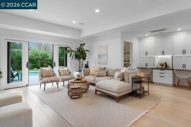 Tucked at the end of a private cul-de-sac in Diablo, this exceptionally remodeled estate offers a rare opportunity to own TWO FULLY INDEPENDENT RESIDENCES on apx. 1/2 acre of park-like grounds.Thoughtfully designed the property features a refined single story main residence, showcasing vaulted ceilings, European white oak floors and a seamless indoor-outdoor flow. Custom detailing and amenities, including smart home technology provide comfort and convenience throughout! Expansive living spaces open to an elevated entertaining deck overlooking the resort-style pool and lush landscaping. The fully independent guest residence lives like a true second home - complete with its own private yard, an upstairs primary suite and an additional bedroom and bath on the main level. Ideal for multi-generational living, extended guests, or private work-from-home retreat. With versatility rarely found in today's market. The grounds are a stand out feature - an artful composition of mature landscaping, curated garden rooms and intimate outdoor spaces for both relation and entertaining. Every element has been created to enhance the experience of indoor-outdoor living. This is more than a home, it is a private dual residence estate offering a lifestyle of comfort, flexibility. and timeless appeal.