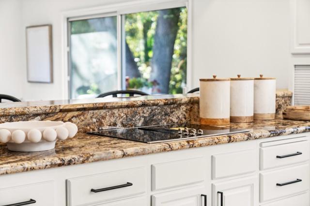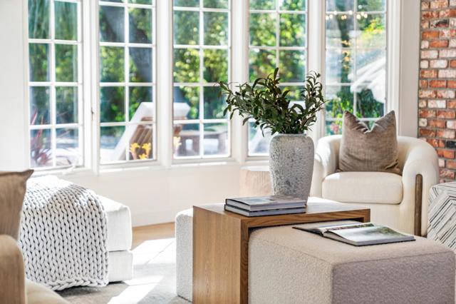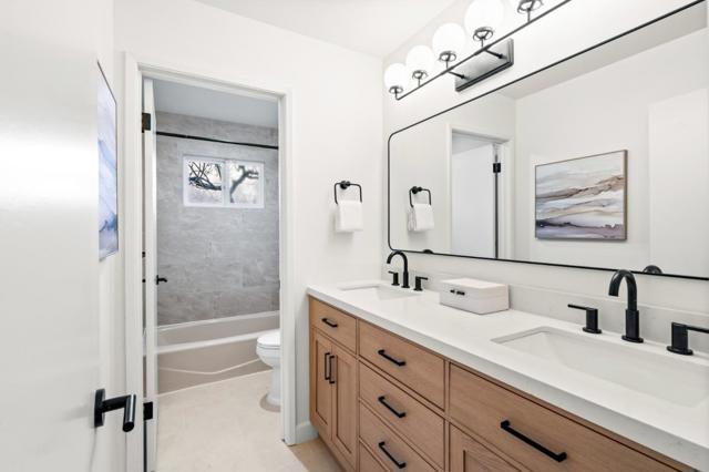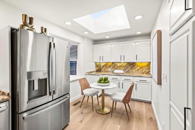 1st time on the market after 60+ years of single ownership, set on a nearly ½ acre flat lot and tucked away on a quiet cul-de-sac. A welcoming Northeast-facing double door entry opens to bright living spaces enhanced by brand new wide plank oak hardwood flooring, recessed lighting, and designer fixtures from Pottery Barn throughout. The elegant, light-filled living room showcases a charming vintage brick accent wall, adding warmth and character, while the semi open dining area offers the perfect space for entertaining. The chefs kitchen features brand new SST GE Profile appliances and refreshed cabinetry, complemented by a sunny breakfast nook with a skylight that fills the space with natural light. A spacious family room nearby creates a comfortable gathering area with direct views of the expansive backyard. All bathrooms have been thoughtfully updated with modern fixtures and designer finishes. A convenient powder room serves guests, while the upgraded 2 car garage features a new garage door, finished drywall, and epoxy coated flooring. Set on an exceptionally large lot, the backyard offers a truly rare setting with a resort style swimming pool, park-like creekside backdrop, and expansive open space for a future ADU, sports court, or possible SB9 potential. Welcome home!