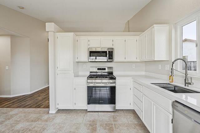 Nestled at the end of a quiet cul-de-sac, this beautifully updated home rests on a generous 10,868 sq ft lot, where sweeping views of the rolling hills offer a serene and timeless backdrop. Designed for both relaxation and celebration, the interior welcomes you with a thoughtfully refreshed kitchen complete with sleek quartz countertops, a deep stainless steel sink, modern fixtures, and painted cabinetry. A full suite of stainless Frigidaire appliances, including a built-in microwave, 5-burner gas stove, and dishwasher, makes everyday living feel effortlessly elegant. The bathrooms echo this refined touch, featuring matching quartz surfaces, updated faucets, and contemporary lighting that elevate every moment. Bathed in natural light, the home radiates warmth and comfort, creating an inviting atmosphere in every room. Step outside to discover a private, expansive backyard-an open canvas for gardening, play, or future dreams like a pool, all set against the tranquil beauty of the surrounding hills. This move-in ready gem offers not just a place to live, but a space to thrive, tucked within one of Hollister's most desirable neighborhoods.