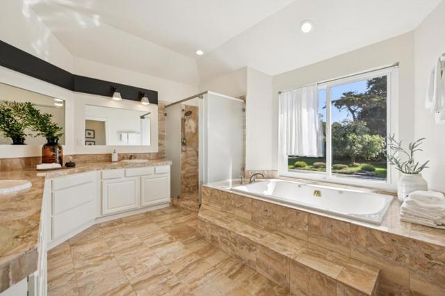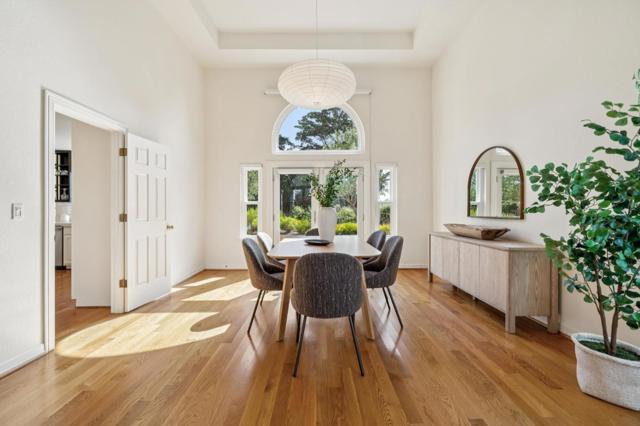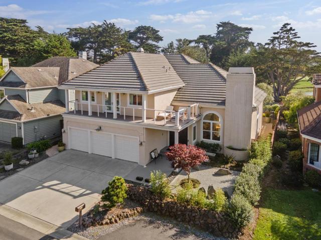Discover the elegance of 225 Eagle Trace Drive, a serene retreat in Half Moon Bay. This luxurious 3270 square foot home is a blend of sophistication and comfort. As you step inside, you're greeted by the grandeur of vaulted ceilings that invite an abundance of natural light, highlighting the home's refined features. The updated kitchen features quartz countertops, a breakfast bar, and stainless steel appliances, including a gas oven and stove. With five spacious bedrooms and three elegant bathrooms, the home offers ample space. This residence offers five generously sized bedrooms and three meticulously appointed bathrooms. The primary ensuite is a private oasis, featuring a separate shower, a luxurious Jacuzzi tub, and a double sink bathroom, along with a spacious walk-in closet that meets all your storage needs. The ground level bathroom has been tastefully updated, enhancing the home's charm. Step outside to discover Zen-like gardens that overlook a tranquil pond, providing a peaceful and serene environment. Hardwood floors and built-ins throughout add to the home's timeless elegance, while the wet bar and dedicated laundry room ensure modern-day convenience. Experience this peaceful haven in Half Moon Bay.