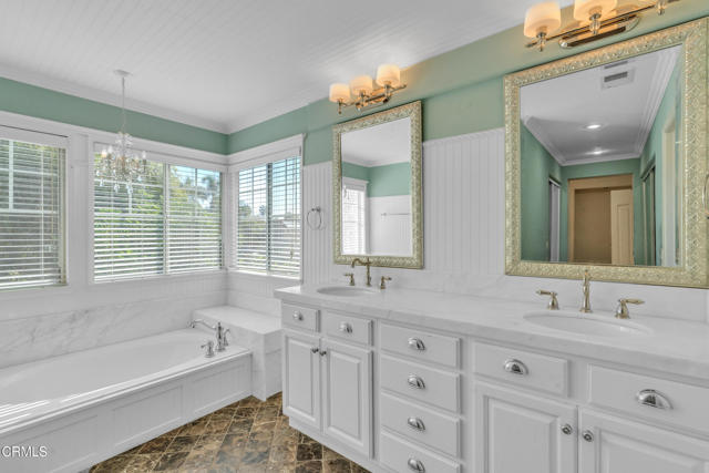 Welcome to this beautifully upgraded 4 bedroom, 3 bathroom home located in the highly desirable Cypress Pointe community of North Oxnard, directly across from River Ridge Golf Course.This light filled residence features a custom remodeled French Country kitchen, spacious living areas, and four generously sized bedrooms including one downstairs with an adjacent full bath. All three bathrooms have been tastefully remodeled, and upgraded lighting and appointments are found throughout.The home sits on a premium lot with a private backyard, anchored by a majestic pine tree and enhanced with a custom painted patio, built in spa, and prolific lemon, orange, and pomegranate trees; perfect for relaxing or entertaining.Community amenities include open green spaces, walking paths, colorful landscaping, pool, spa, tennis, pickleball and basketball courts. Just 10 minutes from Ventura Harbor and Oxnard Shores, this home offers the perfect blend of comfort, style, and location.A rare opportunity to own a designer's own home in one of North Oxnard's most sought after neighborhoods.