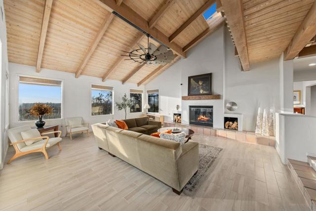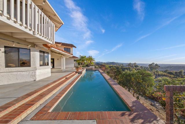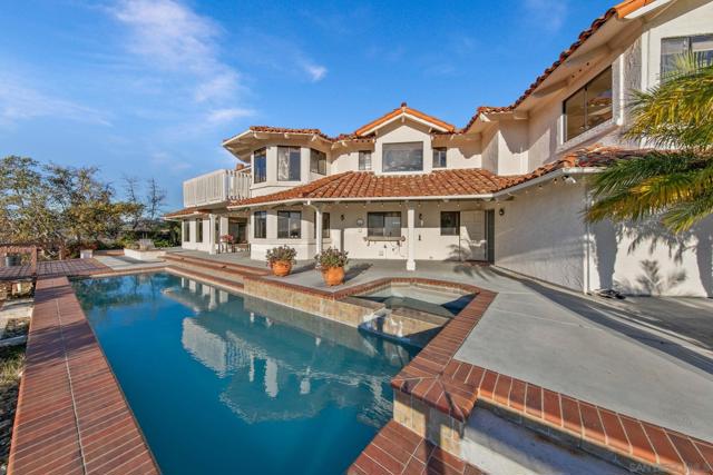 Perched on a scenic ridgeline with sweeping sunset views, this private Mediterranean-style estate offers luxury living at an aggressively priced, below-market value. Nearly 5 acres across two legal parcels provide rare flexibility for expansion, guest home, hobby vineyard, or agricultural use. The 4,173 SF interior features vaulted ceilings, exposed beams, a grand living room with stone fireplace, and a gourmet chef’s kitchen with natural stone counters, center island, and indoor-outdoor flow. The spacious primary suite includes its own view balcony and retreat area. Outdoors, enjoy a resort-style pool overlooking panoramic hills, mature landscaping, terraced pathways, and exceptional privacy. A unique opportunity to secure a view estate with land, amenities, and long-term potential—priced to sell quickly.