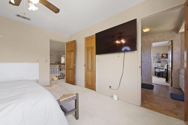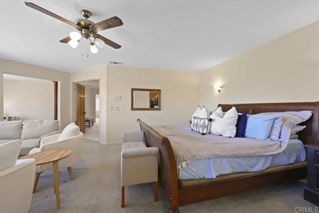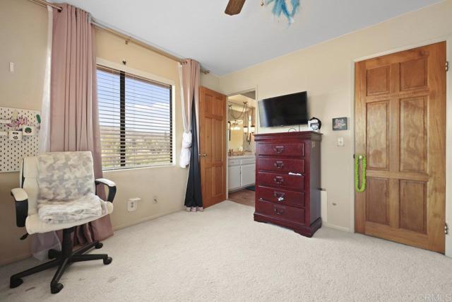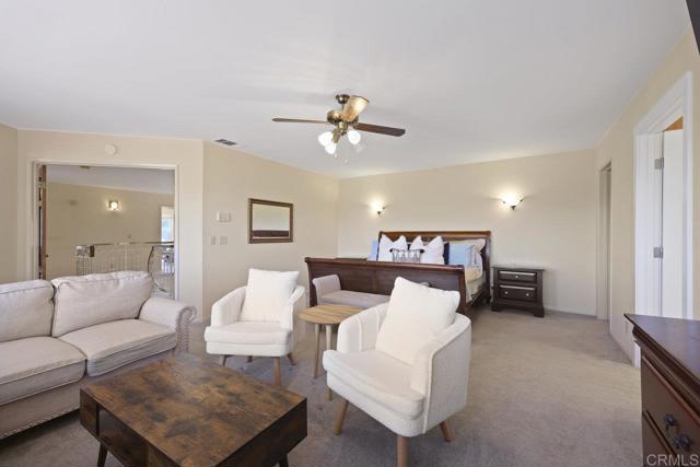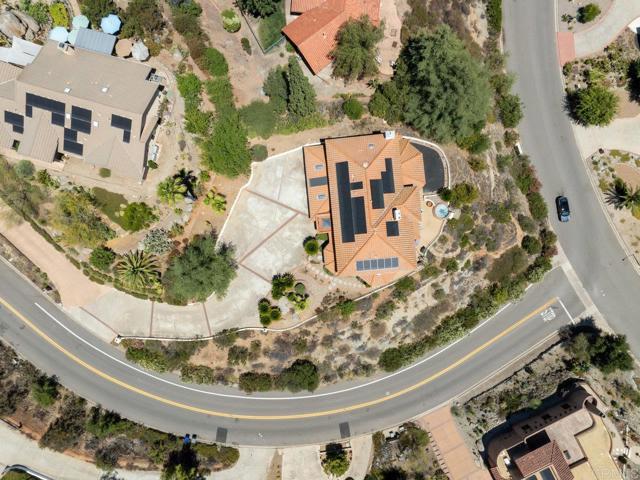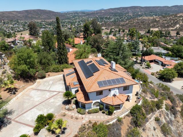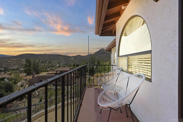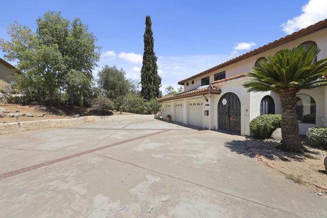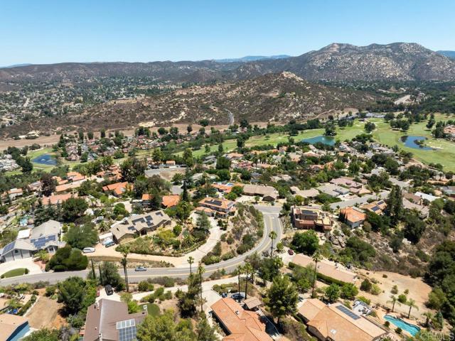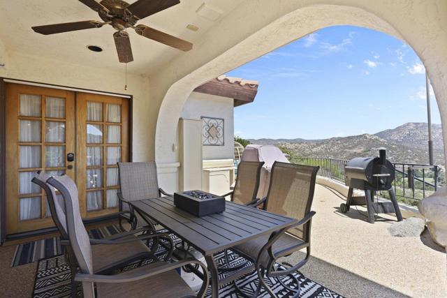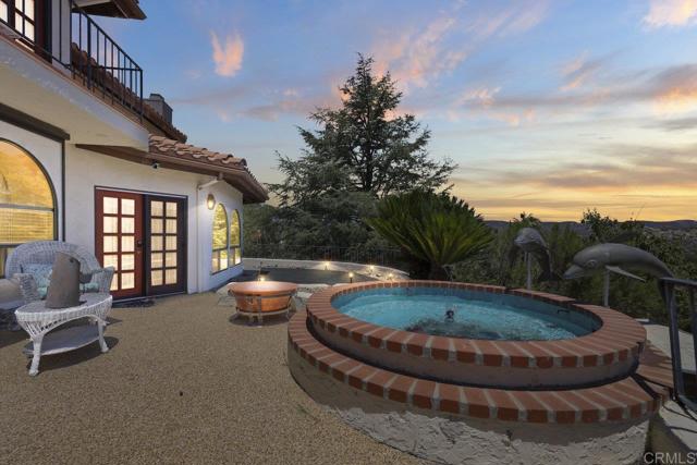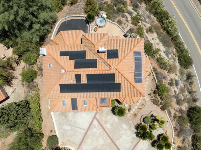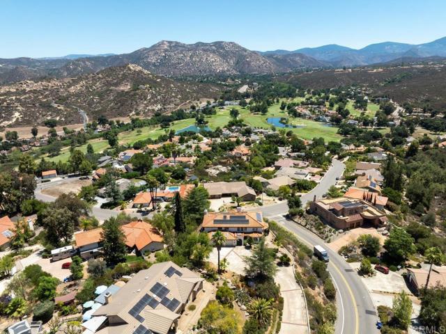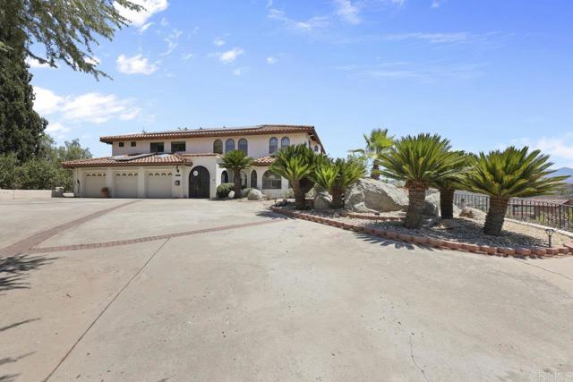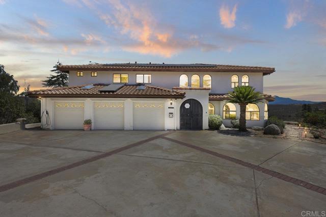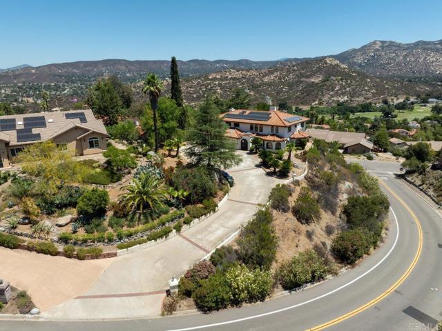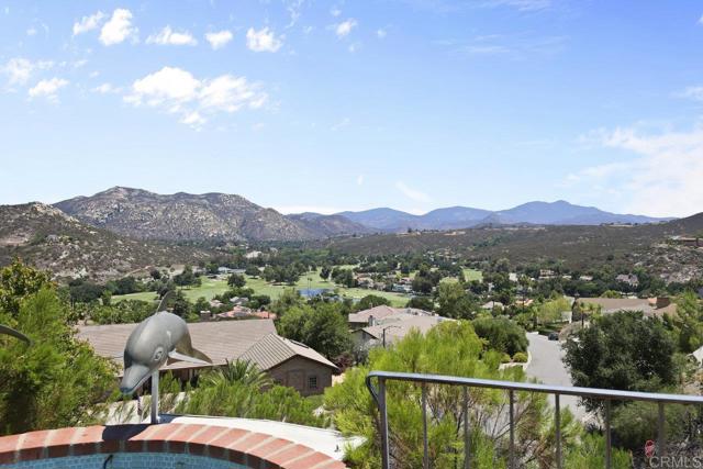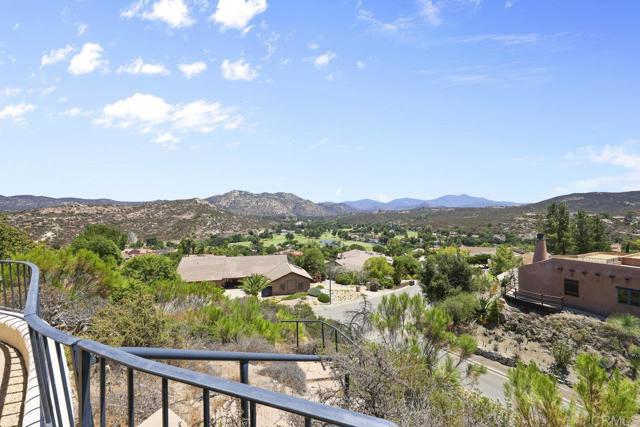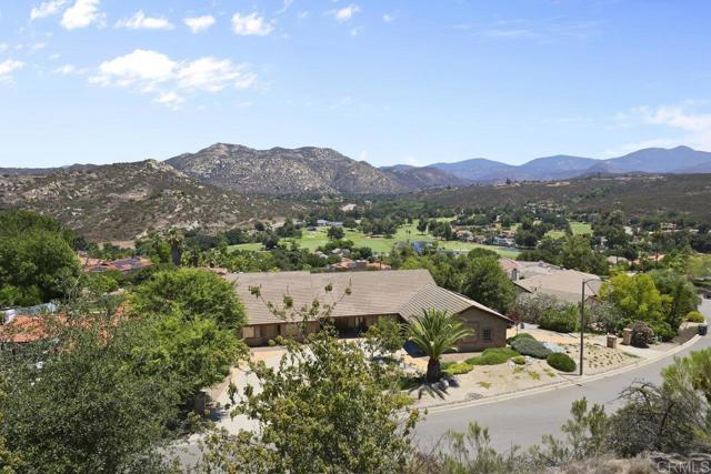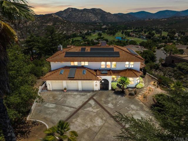 Situated atop the Prestigious San Diego Country Estates, this custom built 3,859 sqft home is one of a kind. 4 bedrooms, 4 bathrooms, 2 family rooms, 2 dining rooms, hidden wine cellar, Putting Green out back, waterfall entry, sand cast art wall from renowned San Diego Artist and Architectural engineer of the San Diego Zoo Charles Faust, 3 car garage, solar w/ 3 Tesla batteries and EV hookups, elevator/lift for those who wish to skip the stairs, and breathtaking views from every window in the entire home. Drive your golfcart to your tee time or watch the golfers from the panoramic views in your backyard while watching the east facing sunrise. Full privacy at the top of the mountain and no neighbors encroaching your privacy or views. The property is just over half an acre (.53) at 23,086 sqft with lots of driveway parking. MAJOR VIEWS in this Master Plan Community.
