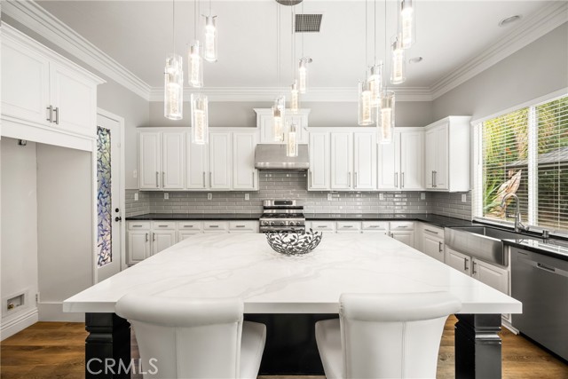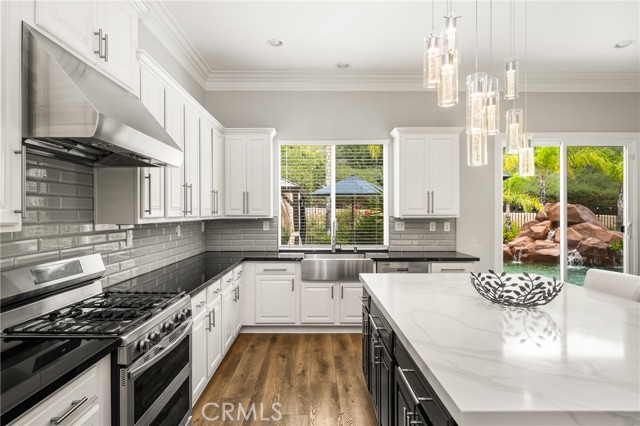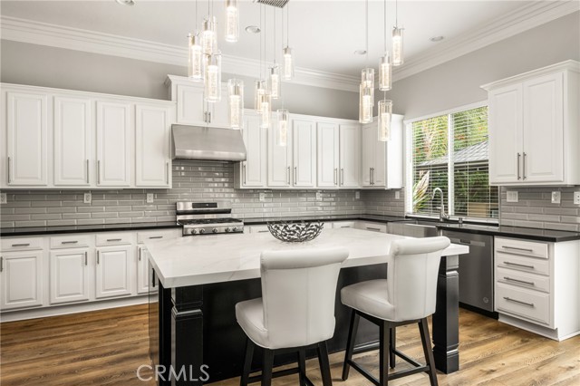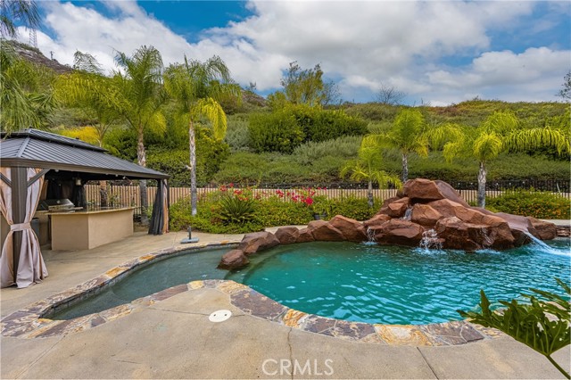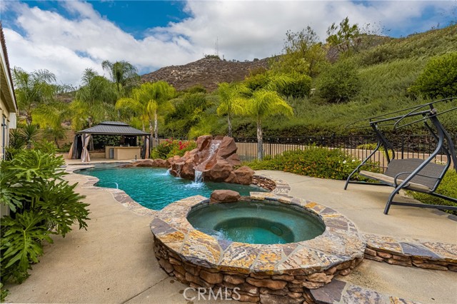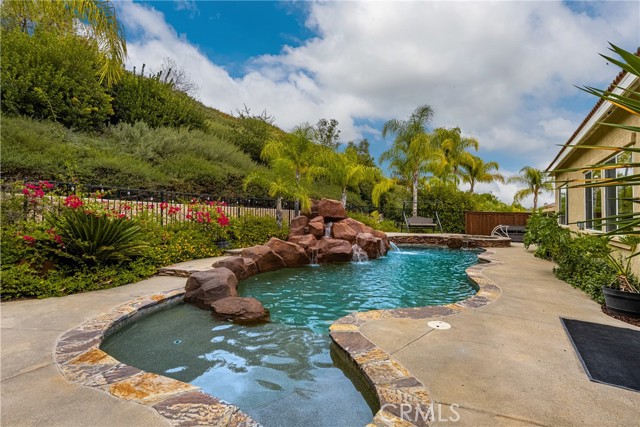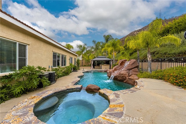 Behind the gates of Murrieta Heights, discover a home where thoughtful design meets everyday livability. 23850 Hollingsworth Dr offers a beautifully updated interior filled with natural light, soaring ceilings, and a layout that flows effortlessly from room to room. At the heart of the home, the chef’s kitchen stuns with an oversized quartz island, stainless appliances, and a walk-in pantry—opening seamlessly to the family room for easy connection. The downstairs primary suite feels like a true retreat, complete with a spa-inspired bath and dual walk-in closets. Upstairs, a spacious loft and private ensuite guest room offer versatility for family or guests. Step outside to a backyard built for entertaining, featuring a rock waterfall pool, spa, built-in BBQ, and bar seating—all framed by mature landscaping and total privacy