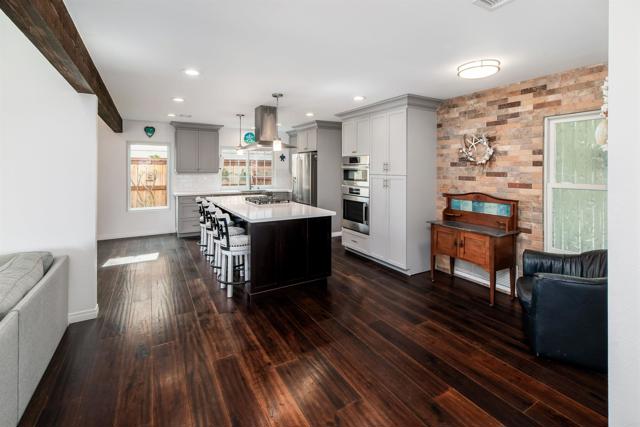 Effortless single-story living with style, soul, and a long list of upgrades—this Rancho Ponderosa gem is the one you’ve been waiting for. Featuring 3 bedrooms, 2 bathrooms, and a thoughtfully designed layout, this home blends warmth and functionality in all the right ways. Step inside to a bright, inviting interior where rich hardwood floors, exposed beams, and a sunken living room create a warm, architectural feel. The fireplace serves as a cozy focal point, perfect for relaxed evenings or entertaining guests. The beautifully remodeled kitchen is a true centerpiece, featuring stainless steel appliances, quality cabinetry, generous prep space, and a large island ideal for gathering, dining, and everyday living. Both the front and backyard showcase lush, well-maintained landscaping, enhanced with thoughtful upgrades including new sod, irrigation improvements, added pavers, and curated drought-conscious plantings. The private backyard offers a peaceful setting for entertaining or unwinding, with no direct rear neighbors—creating an added sense of privacy—complete with a finished shed (installed in 2025 with electrical) that makes an ideal home office, gym, studio, or guest retreat. This home has been meticulously maintained and upgraded throughout. Notable improvements include exterior paint (2023), roof cleaning (2023), upgraded irrigation systems and timers, reinforced and refreshed patio cover with shade screen, added exterior lighting and electrical, new fencing and gates, and extensive drainage and hardscape enhancements. The garage has been fully improved with added storage systems, drywall and paint, updated electrical, and a newer opener (2022). Inside, the home was freshly painted throughout (2022–2023), with solid core doors added to all bedrooms and the hallway bathroom, upgraded window coverings, and enhanced closet organization systems in every bedroom. Additional upgrades include a fire-rated garage entry door, updated bathrooms with new fixtures, cabinetry, GFCI outlets, and a new primary toilet (2024), a beautifully remodeled primary bathroom, as well as ceiling fans with lighting in all bedrooms. Located in a welcoming neighborhood known for its strong sense of community, Rancho Ponderosa offers HOA amenities including community events, parks, playgrounds, sport courts, sidewalks, and maintained easements. The home is also situated within highly sought-after school boundaries, including El Camino Creek Elementary and La Costa Canyon High School. Enjoy close proximity to local parks, shopping, dining, and the beaches of North County. With its extensive upgrades, functional layout, and inviting character, this move-in ready home offers a rare opportunity to enjoy comfort, flexibility, and community in one of the area’s most beloved neighborhoods.