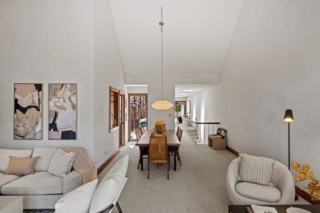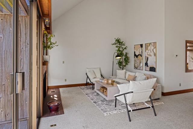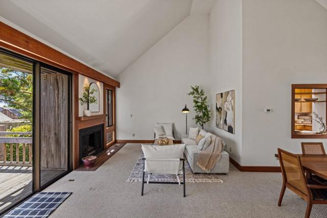 Discover the serene charm of High Meadows with this stunning townhome nestled above the picturesque Carmel-by-the-Sea. Boasting three bedrooms, two bathrooms, and over 1,800 square feet of sunlit living space, this forested retreat is a true gem. The main level invites you in with a spacious primary bedroom opening to a private patio, a bright living area with soaring vaulted ceilings, an expansive deck, and a cozy fireplace perfect for unwinding. The kitchen featuring high ceilings, a large skylight, and an outdoor dining area for al fresco meals. Downstairs, you will find two additional bedrooms, a full bath, a convenient laundry room, and another deck to soak in the tranquil views. Additional perks include a private garage and generous storage space. Situated within the coveted Carmel Unified School District and just moments away from the best of the Monterey Peninsula, this home is a must-see. Experience the allure of High Meadows living!