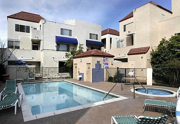 Price Reduction - This 2 story bright townhouse style home was one of the models for the complex. Green house windows, large sliding glass doors & high ceiling flood the home in sunlight. The unit features a spacious living/dining area, fireplace, balcony, extra storage, new paint, wood floors downstairs, 2 master bedrooms, washer/ dryer, A/C, recessed lighting, & skylight. Palo Alto Central boasts great landscaping with plants, fountains, a rose garden, swimming pool, Jacuzzi & a recreation/conference room. Security gates & underground secured parking. Located on California Avenue's Business District. everything is walking distance. Mollie Stones, Country Sun, coffee shops, the post office, the park and fine dining. The farmers market is every Sunday year round with music, fresh organic produce, flowers and an assortment of foods to sample. You can walk, bike or take a free Shuttle to Stanford or Cal Train to San Francisco. Open House this weekend