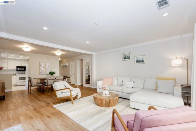 Welcome to a beautifully single-level townhome style condo in the desirable Carriage Place community. This rarely available downstairs end/corner unit offers 2 bedrooms, 2 bathrooms and 1,208 sqft of comfortable, thoughtfully designed living space. The floor plan features a spacious living & dining area filled with natural light, complemented by laminate flooring, recessed lighting, and a cozy fireplace. The modern kitchen is enhanced with updated recessed lighting, classic subway tile with ample cabinetry for storage. Two generously sized bedrooms with large closets, and the primary suite includes an en suite bathroom. The bathrooms showcase stylish finishes and built-in showers seating. Step outside to your own private patio, perfect for relaxing or entertaining. In-unit washer and dryer for your convenience. One assigned covered carport space and abundant guest parking. The low HOA dues cover water and garbage services. Ideally located just minutes from downtown Walnut Creek, Walden Park, Iron Horse Trail, and within walking distance to BART station. Don’t miss this exceptional opportunity to own a beautiful home in a prime location!