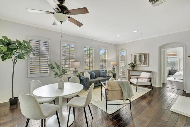 SELLER ENTERTAINING OFFERS FROM $699,000 - $749,000 - Gorgeous 2 bedroom 2 bath located in the resort style living of MISSION VALLEY Escala. This serene upscale neighborhood delivers a blend of amenities, architectural charm, and prime access to the city. Stairway access leads to the main floor which is one level. This beauty offers upgraded interiors with stunning granite counters, stylish backsplash and large eat in island great for entertaining, serving or prepping. Just purchased stainless cooktop, range, dishwasher plus brand new refrigerator. Large open space living room with dining offers gas fireplace with plenty of windows providing plenty of natural light. Primary suite includes balcony access, walk in closet, and dual vanity at bathroom. Secondary bedroom includes french door to the Juliette balcony with full bathroom across the hall. Entire interior just painted! You will love the flooring, gas fireplace and built in laundry space. Attached single car garage with a dedicated second space right out front. Many extras include, surround sound pre-wire, ceiling fans, AC, white shutters, spacious balcony with plenty of room to lounge! Community dog park, clubhouse, pool, gym and trails! Walk to shopping, dining, or coffee just across the street, with Snapdragon Stadium, SD trolly transportation and Fashion Valley Mall at your finger tips! Location, location, location! VA APPROVED ! The right time, the right home, make it yours!