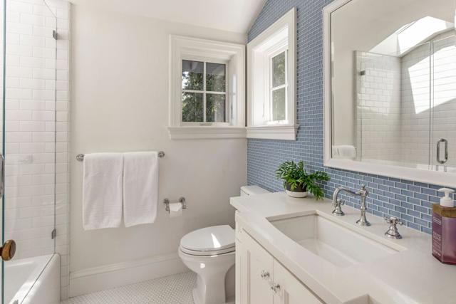 Hamptons-style elegance defines this refined estate custom built just 9 years ago in a premier location one-half mile from the Village. Distinguished interiors showcase hardwood floors, crisp white millwork, and elegant finishes of stone, tile, and brick. Built by MJK Homes, Architecture by Duxbury Architects, Interiors by Kriste Michelini Interiors. The home features sophisticated formal rooms, a library with office, and a stunning kitchen and open family room. There are 5 bedrooms, 5 full baths, and 2 half-baths, including a main-level suite ideal for guests and a luxurious upstairs primary suite. French doors open to a Connecticut bluestone terrace with outdoor kitchen, dining and fireplace patios, and a resort-like yard with vast lawn, pool, and spa. A pool house with kitchenette and full bath offers flexible use or potential as an ADU. With modern comforts and integrated technology, this East Coast inspired retreat offers the ultimate in quiet sophistication on approximately 1 acre and with access to excellent Los Altos schools.