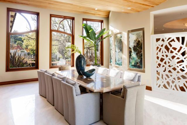 This stunning residence of 20,982 sq. ft. rests on more than 8 acres of resort-like grounds. Globally-inspired architecture, flawless construction by an award-winning builder, the finest materials, finishes, and technology, and exquisite interior and landscape design, create spaces that are inspiring and comfortable. From its sumptuous master suite, supremely appointed kitchens, and indoor pool under retractable skylights, to its 15-seat theater, 3,000-bottle capacity wine cellar, and comprehensive home automation, this remarkable haven offers every conceivable amenity. A separate office structure is amply outfitted to host executive-level meetings and serve other business needs. This prestigious estate is surrounded by verdant views and is just minutes from all the major Silicon Valley tech companies, Sand Hill Road VCs, top-10 ranked California schools, major airports, and central to the best of Bay Area attractions.