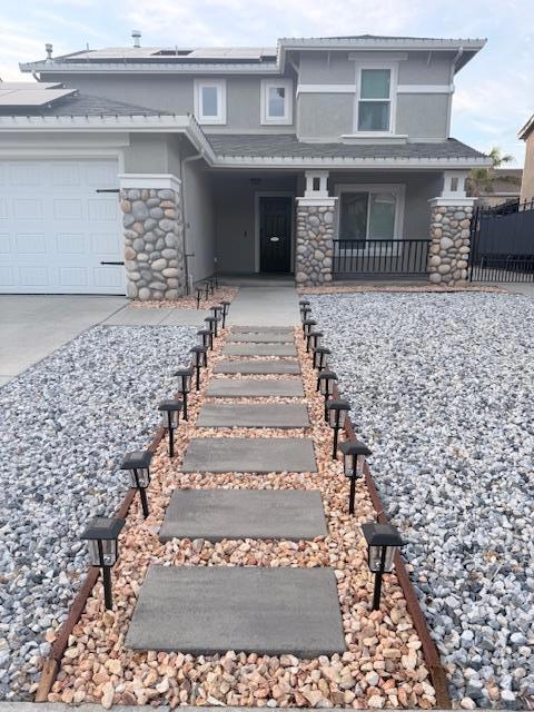 This beautifully renovated home offers modern upgrades, including Milgard Dual Paned Energy-Efficient Windows with custom trim, fresh interior paint throughout, and a fully upgraded insulated garage with finished walls, a new insulated garage door with a new smart camera motor, epoxy flooring, EV charger, overhead storage racks, and air conditioning. Outdoors, enjoy a drought-resistant rockscape front and backyard, a renovated pool area with a covered BBQ space, and a large storage shed. Additional features include solar panels, RV driveway and parking, and a brand new water softener. All toilets have been replaced with American Standard Dual Flush Toilets, completing the homes thoughtful upgrades. This property combines style, comfort, and energy efficiency. Schedule a tour today!