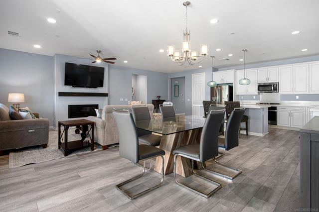 Built in 2023, this upgraded single-level home in Park Circle offers 3 bedrooms, 2 full bathrooms, and a private den with French doors, across approximately 2,082 square feet. Luxury vinyl plank flooring flows through an open layout, anchored by a spacious great room with a gas fireplace. The kitchen features quartz countertops, large island with sink and RO water, a spacious pantry, accented with a stainless steel appliance suite including a French door refrigerator, built-in oven, 30” 5-burner gas cooktop, vented microwave, and dishwasher. Enjoy quiet mornings with sunlight across the kitchen, focused workdays in the private den, and relaxed evenings gathered around the fireplace. The primary suite offers a comfortable retreat, with cultured marble surfaces, spacious walk-in shower, and large walk-in closet. The split floor plan: 2nd & 3rd bedrooms share a well-appointed full bath with cultured marble surfaces as well. Owned solar, whole-house water treatment, ceiling fans, Ring doorbell system, Wi-Fi enabled garage door opener, thermostat, and fire/carbon detectors add efficiency and convenience. The backyard is designed for use, featuring a covered patio, turf, hardscaping, irrigation, lighting, a water fountain, and a custom 4-hole putting green! Park Circle residents enjoy access to community pools, clubhouses, fitness center, parks, and walking trails, with easy access to I-15 for commuting. Multiple casinos are within a 15-minute drive. Move-in ready with modern finishes and lifestyle-focused upgrades.