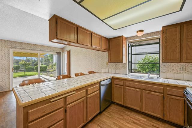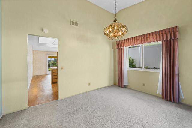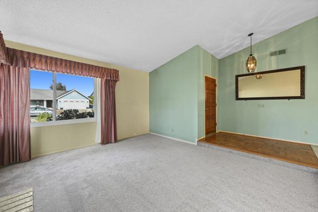 What everyone is looking for, a single story on a large cul de sac lot, no HOA fees close to 78 in Tri City. Enjoy this oversize primary bedroom (actually 2 bedrooms), kitchen opens to family area, vaulted ceilings in generous dining area, step down LR with FP. AC, dual pane windows, updated in 2024: primary bath is ADA accessible, HVAC updated 2023, new hot water heater installed 2022, washer, dryer & refrigerator convey to buyer. Covered patio, lot extends to Columbia Drive offers open privacy. Make this home your own. 4 miles to the beach, walk to Christa McAuliffe Elementary school, Mira Costa College, Sprinter, EZ access to 78, one exit to the shoppes at Carlsbad.