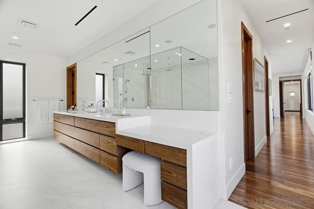 Your sprawling oasis located within the secluded Gates at the Woods community awaits you. This California Contemporary 7,093 sf 2020 built gem with 6 bedrooms, 10 bathrooms, maids quarters, gym, and den effortlessly creates the ideal indoor/outdoor living experience with magnificent glass sliders, two heated covered patios, multiple outdoor tv's, full bbq, in-ground pool with hot tub, half-sized basketball court, putting green, golf simulator, two outdoor powder rooms, expansive turf areas, and exquisite landscape. Luxurious finishes include pristine porcelain flooring on the 1st floor, beautiful hardwood floors on the 2nd floor, custom cabinetry, and gorgeous quartz throughout. The 1000 sf master bedroom retreat wing includes a 250 sf dual walk-in closet and immaculate 295 sf bathroom featuring a soaking tub and massive shower with multiple rain showerheads and steamer. No expense was spared for this custom smart home that includes Thermador appliances, Kohler fixtures, power shades, multi-zoned heating and air-conditioning, whole house audio and entertainment system, central vacuum system, security cameras, and 50 solar panels all that can be controlled with your phone. Make this entertainer's paradise your new home today. HOA includes access to community clubhouse, pool, and fitness center.