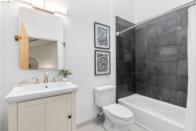Transparent price! This unique waterfront community is tucked away along the Bay Trail on the estuary’s edge in Oakland - a stone’s throw from the Park Street Bridge and the best Alameda has to offer. Achieve your loftiest goals where industrial chic meets modern design, featuring a spacious open floor plan with soaring cathedral ceilings and sleek concrete floors. The wide open-concept kitchen is ideal for seamless entertaining that spills into the dining and living areas. Find privacy in the main level bedroom with en suite bathroom while the spacious upstairs loft offers a flex space for a bedroom, office, or creative space. An additional bathroom rounds out the loft’s offerings. Complete with in-unit laundry, ample storage, designer light fixtures, and gated parking with deeded parking.