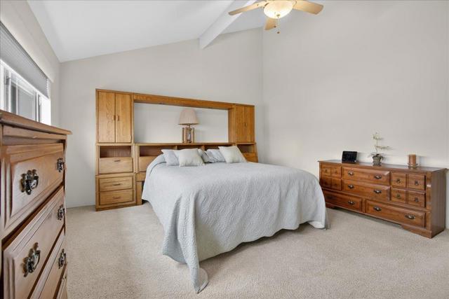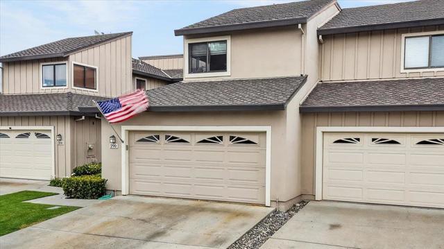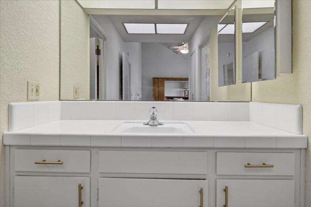 This well-designed 2-bedroom, 2.5-bath home features the rare benefit of two primary suites, offering comfort, privacy, and flexible living options. Inside, you'll find tile countertops throughout, a functional kitchen equipped with double ovens and a built-in trash compactor, and a formal dining area with hardwood flooring perfect for gatherings. The living room is spacious, and the gas fireplace provides a cozy atmosphere. Enjoy outdoor living with a generous front courtyard and backyard decking, ideal for relaxing or entertaining. One primary suite includes a private balcony, creating a peaceful escape. Additional features include a large indoor laundry room with ample counter space and storage cabinets, Plantation style shutters, and an attached 2-car garage with storage shelving. With a little updating, this home presents a fantastic opportunity for investment growth, allowing you to add your personal touch while building equity. Tucked in a serene setting with a private feel, this property is a great chance to own in the desirable Ridgemark golf community.