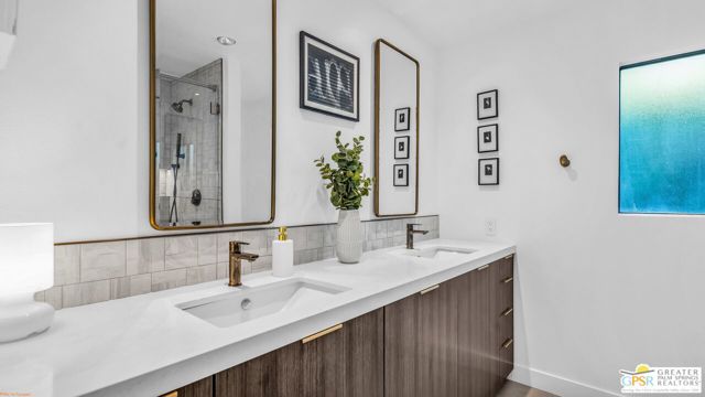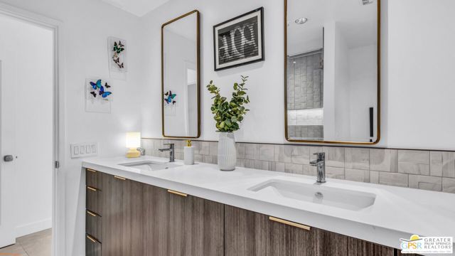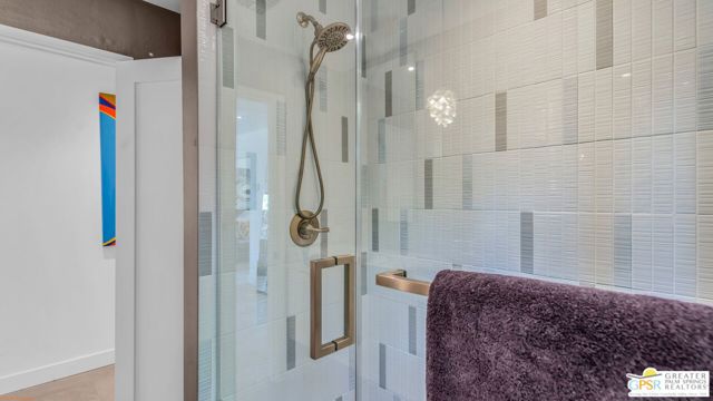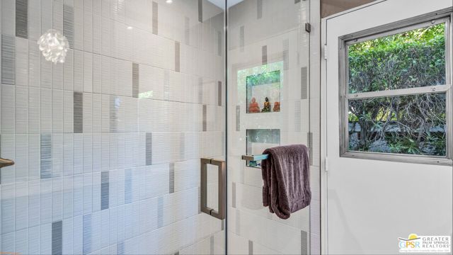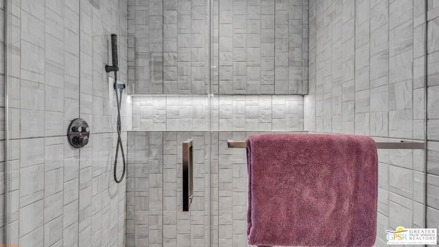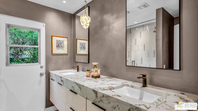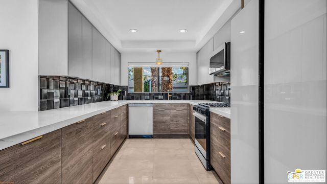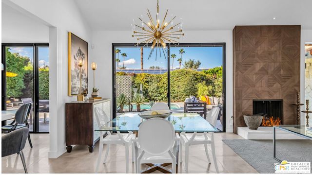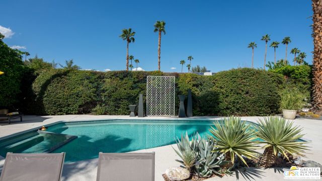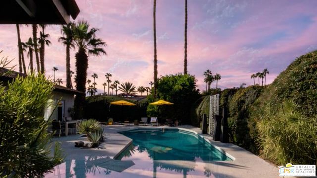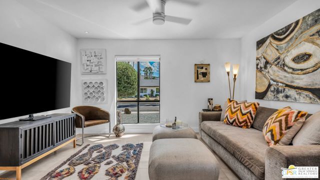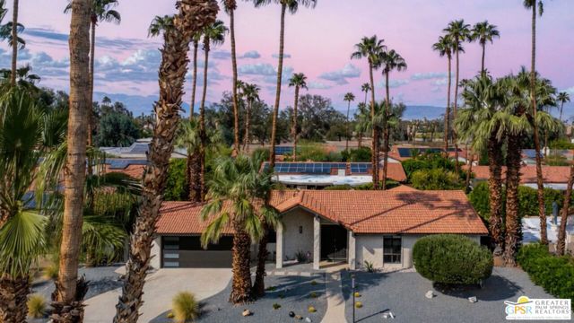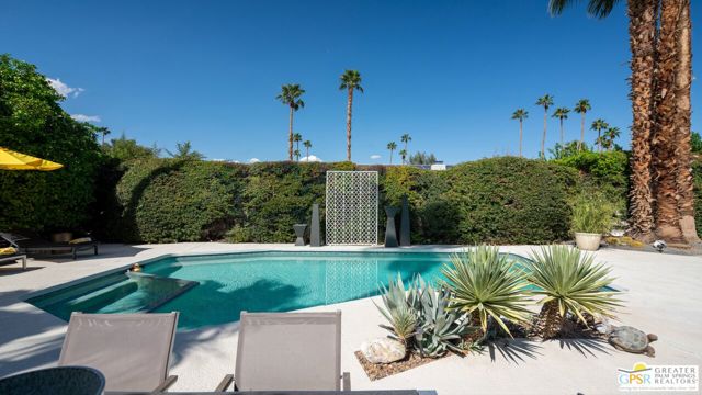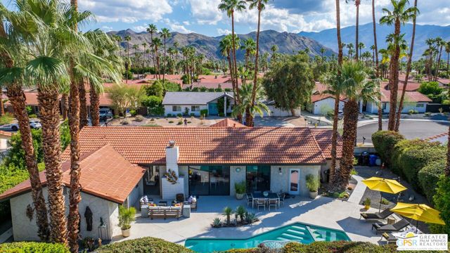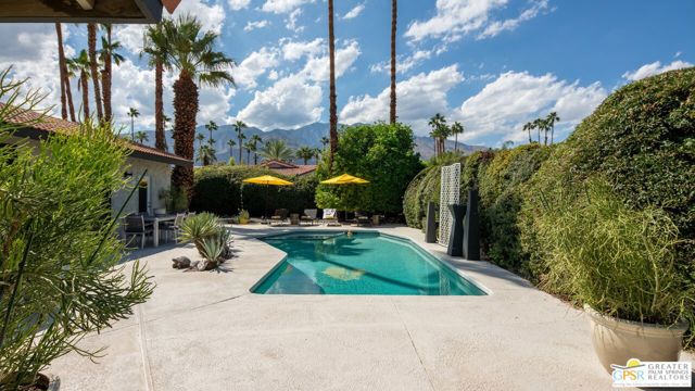 Beautifully remodeled 1970s Mid-Century home in the desirable Los Compadres neighborhood of South Palm Springs. Located on fee land. This move-in ready property offers 2 bedrooms plus a den (originally a 3rd bedroom) and a spacious primary suite with Panoramic Mountain views. Fully renovated in 2024 with new porcelain tile floors throughout, a custom kitchen with quartz countertops, and Premium Bespoke appliances. Bathrooms feature new vanities, mirrors, lighting, and fixtures. Additional upgrades include custom pantry cabinetry, new window treatments, recessed lighting, refreshed landscaping, and a new garage door with epoxy-finished flooring. The backyard is a Private Desert Oasis with a Boomerang-Shaped Pebble Tec pool and spa, perfect for entertaining or relaxing. As part of a 50-home HOA, residents also enjoy access to a private 2-acre park with a dog park, tennis and pickleball courts, just around the corner at Beverly and Alta Loma Drive. This home blends timeless Mid-Century charm with modern finishes in one of Palm Springs' most sought-after neighborhoods. Close to shoppings and restaurants. Buyer and Buyer's agent to conduct their own due diligence.