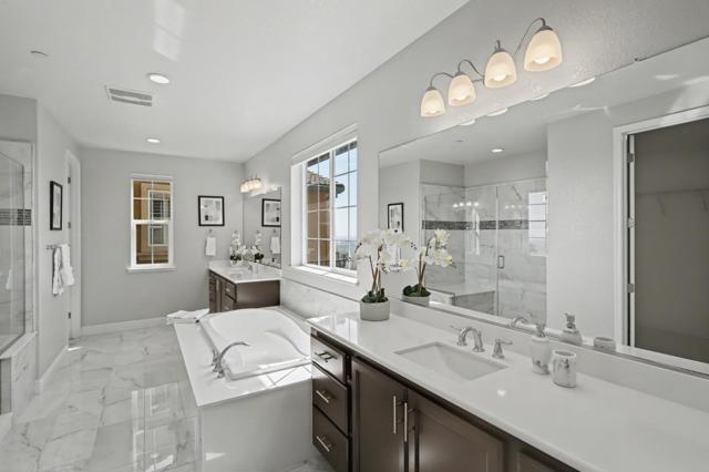 Welcome to Cantera Dr! This stunning home is located in the highly sought-after Reserve Community of Hayward Hills, where luxury finishes, natural light, and sweeping Bay Area views come together beautifully. Thoughtfully designed for comfort and entertaining, this home features an ideal floor plan with a bedroom and full bath on the first level, perfect for guests or multigenerational living. The open-concept layout connects the living room, dining area, and backyard retreat, creating an inviting space for gatherings. At the heart of the home is the gourmet chefs kitchen, highlighted by an expansive island and huge walk-in pantry, making it the perfect centerpiece for entertaining. Upstairs you'll find three spacious bedrooms & a laundry room, offering flexibility for family living or a work-from-home office. The luxurious primary suite serves as a private retreat with breathtaking views and a spa-inspired bathroom with dual vanities, soaking tub, walk-in shower, and a generous walk-in closet. Step outside to enjoy panoramic Bay Area views from the deck or unwind in the low-maintenance backyard while taking in sunsets. Ideally located near hiking trails, BART, and major commuter routes, this exceptional home offers the perfect blend of luxury, convenience, and hillside living!