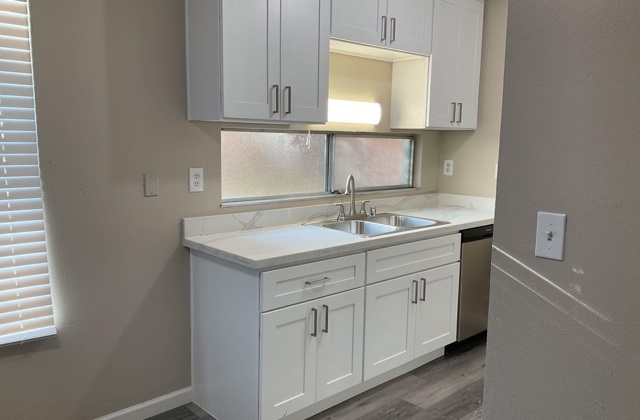 Stunning Remodeled Treat Boulevard unit! A must see 1-bedroom unit with private parking and pool! New laminate flooring throughout! Newer paint! New kitchen with great new cabinetry, appliances and quartz countertops! Private patio! Minutes to schools and shopping!