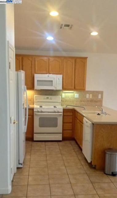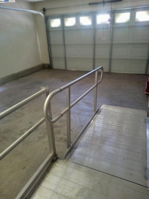 Unique trilogy home with tile flooring in entry and main floor. bedrooms have carpets Yards picked up and easy maintenance with bushes and front lawn in and back yards perfect for your household pets. Cement tile roofing. Garage has ADA ramps for wheelchair access and the master bath has Jacuzzi upright tub and shower unit, perfect for safe comfortable showering and bath care. Rear patio with lattace covering for private rear yard gatherings.