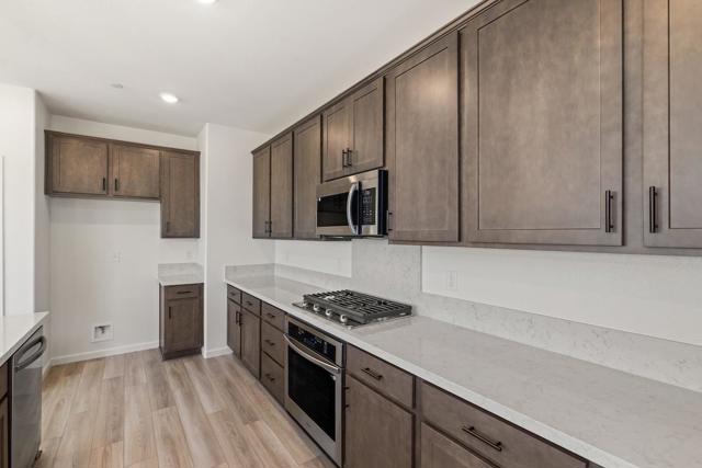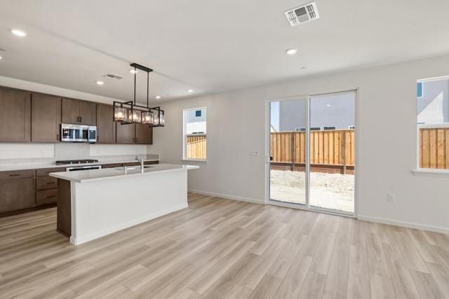 Location! Location! Sought after corner homesite. West facing home with lots of natural sunlight. Discover the perfect blend of comfort and functionality in this well-designed new home. Convenient bedroom and full bath. A spacious family and dining area leads to a modern kitchen showcasing a sleek granite countertop including a range backsplash, pantry and stainless-steel appliances for all your culinary needs. Upstairs, retreat to the sizable primary bedroom and spa-like primary bath with walk-in shower and dual vanity sinks. Dedicated laundry room. Other features include luxury vinyl plank flooring at entry, kitchen, dining and family areas, 40-amp. electric vehicle charging station pre-wiring station and a solar energy system (lease or purchase required), limited 10-year warranty. Easy commute to Hwy 25 and 101. Minutes to award-winning local wineries, boutiques and restaurants. Outdoor enthusiasts can venture to local trails, Hollister Hill State Vehicle Recreational and Pinnacles National Park. Schedule an appointment today.