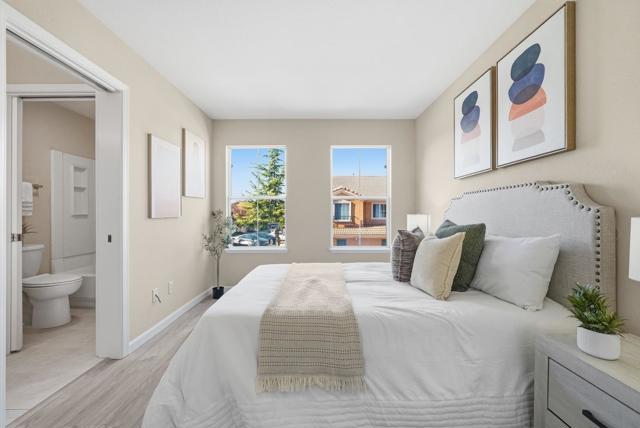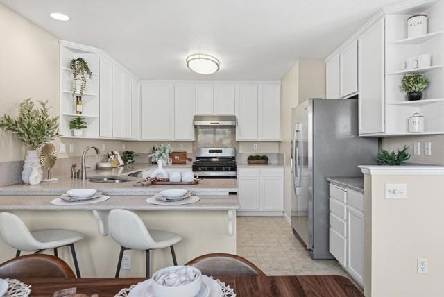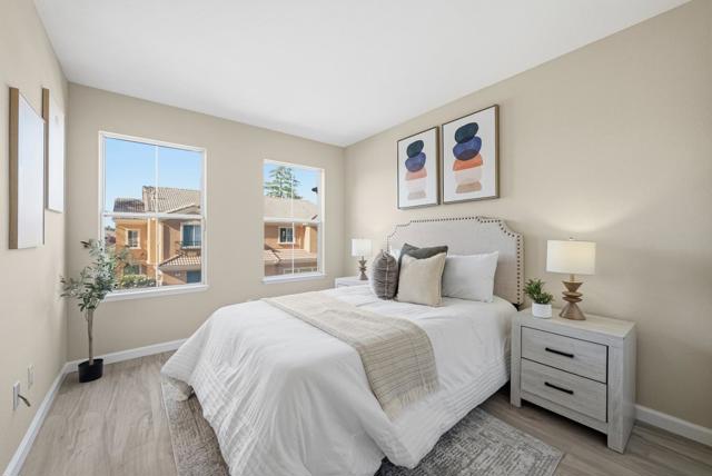Welcome to this charming two story PUD ownership 3-bed, 2.5-bath townhouse with backyard in Milpitas. Upon entry, youre greeted by a bright living room with soaring ceilings, large windows, and a cozy fireplace. The gourmet kitchen features quartz countertops with a breakfast bar, stainless steel appliances, and ample white cabinetry, flowing into the dining area with a ceiling fan/light. There is a door to the rare, spacious fenced backyard, offering seamless indoor-outdoor living. A convenient half bath completes the main level. Upstairs, the primary suite boasts a spacious bedroom with large windows and an en-suite bath with double vanity and shower over tub. Two additional bedrooms and a hallway bath with double vanity and shower over tub provide space for family or guests. Attached garage. Enjoy the community pool and close proximity to dining, grocery (Safeway, 99 Ranch), and shopping (Great Mall). Near BART and with easy access to Highways 237, 680, and 880, plus a short commute to major tech companies. Great public schools and nearby Stratford private school. Do not miss this great opportunity!