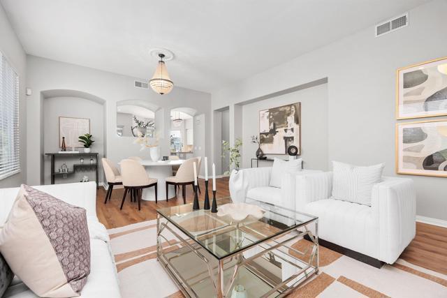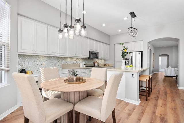 Striking NEW FLOORS! *** It's a Beauty! The ease of ONE-STORY LIVING! .17 Acres.*** A great floor plan with a private primary Bedroom SUITE including walk-in closet, plus mirrored slider closet, separate tub and large shower, with direct access to the patio (a perfect spot for a spa). *** An amazing KITCHEN with built-in desk, 5-burner cooktop, and Convection oven...eat/visit from a built-in counter as well as the kitchen's ample eating area, all OPEN to the FAMILY ROOM where the marble fireplace accents the room-of-entertainment along with the well-sized niche. *** Tantalizing lighting shimmers elegantly throughout the home. *** Don't forget the LAUNDRY room filled with ample cabinetry plus, LG washer & dryer! *** Add to the FUN with the friendly neighbors, walking trails, play areas, and the beautiful refreshing, pool. What's not to love, when it's a WOW HOUSE?