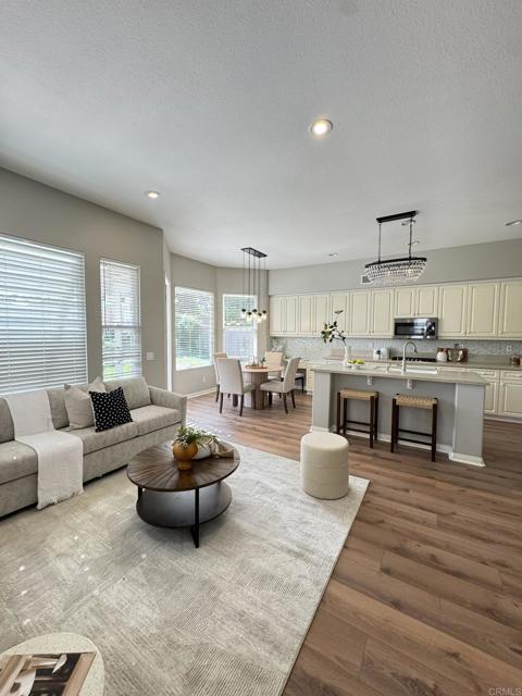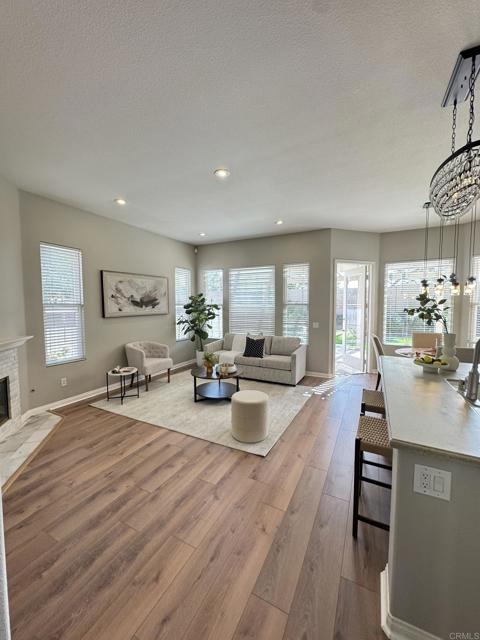 Striking NEW FLOORS! *** It's a Beauty! The ease of ONE-STORY LIVING! .17 Acres.*** A great floor plan with a private primary Bedroom SUITE including walk-in closet, plus mirrored slider closet, separate tub and large shower, with direct access to the patio (a perfect spot for a spa). *** An amazing KITCHEN with built-in desk, 5-burner cooktop, and Convection oven...eat/visit from a built-in counter as well as the kitchen's ample eating area, all OPEN to the FAMILY ROOM where the marble fireplace accents the room-of-entertainment along with the well-sized niche. *** Tantalizing lighting shimmers elegantly throughout the home. *** Don't forget the LAUNDRY room filled with ample cabinetry plus, LG washer & dryer! *** Add to the FUN with the friendly neighbors, walking trails, play areas, and the beautiful refreshing pool. What's not to love, when it's a WOW HOUSE?