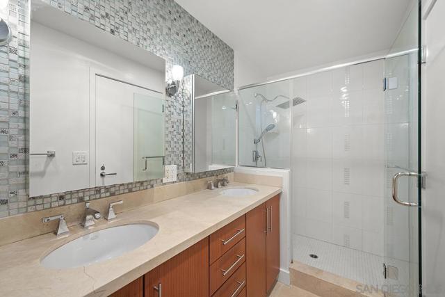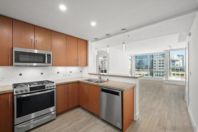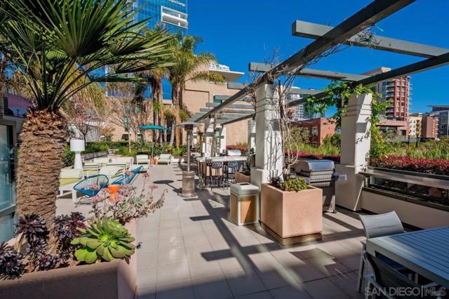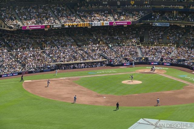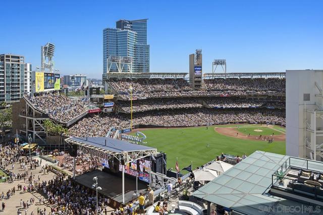 This 10th floor 2-bedroom, 2-bath condo at The Legend delivers exactly what the address promises — front-row seats to San Diego's most iconic neighborhood. The views look directly into Petco Park, meaning baseball games and open-air concerts are as much a part of your living room as your own furniture. The spacious balcony extends that experience outside, and when you want to take it to the next level, the 7th floor deck, ‘Club Legend’ is one of the best amenity spaces in all of Downtown. Inside, the home has been freshly painted and outfitted with newer grey LVT flooring throughout, giving the space a clean, cohesive feel from room to room. Expansive windows bring in generous natural light throughout. The open-concept kitchen features granite counters, stainless appliances including a modern 4-door refrigerator, and a layout that flows easily into the living and dining areas. One of the building's best parking spaces and a private storage unit just steps from your front door round out the package. See supplement for more details. The gourmet kitchen is a chef's dream, showcasing top-of-the-line stainless appliances, granite countertops, European-style cabinetry, and an inviting eat-at bar illuminated by elegant pendant lighting. Floor-to-ceiling windows not only flood the condo with natural light but also offer breathtaking, unobstructed views of Petco Park and Gallagher Square. Split-bedroom floor plan perfect for privacy for roommates or guests. The primary bedroom suite doesn’t skimp on views either. The ensuite bathroom features a dual vanity, tasteful custom tile backsplash, and frameless glass-enclosed shower. The Legend is the only residential high-rise to be built inside the gates of our Major League Ballpark & the only residential tower to be built on the 3-acre Park at the Park / Gallagher Square! This iconic building overlooking the Padres ballpark (voted the best ballpark in America) will be treasured for generations with historic detailing preserved by Bosa to create a world-class residential tower. Legend is centrally located just a few blocks from the Gaslamp Quarter & Marina District for convenient access to endless shopping & dining options. Legend’s amenities include a 2nd floor rooftop deck looking out over Park at the Park complete with pool & spa, fully equipped fitness room, roof garden, barbeque area, steam, sauna, and changing rooms. Your guests & clients will love 'Club Legend' located on the 7th floor, complete with a huge roof deck overlooking Petco Park and an outdoor fireplace lounge, as well as guest parking spaces, available by reservation through a simple mobile app. The concierge service and, 24-hour security add a sense of belonging while an ambiance of refinement & contemporary sophistication is apparent throughout the building.