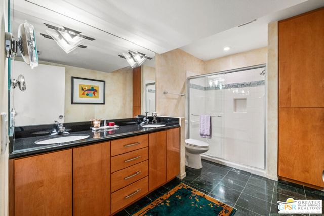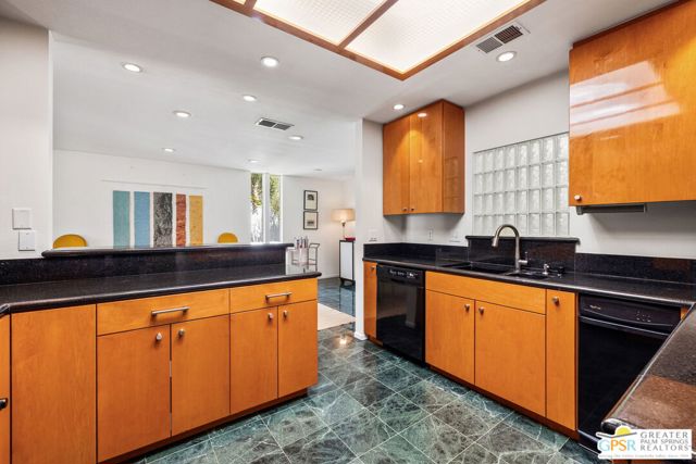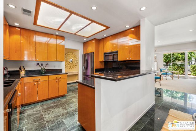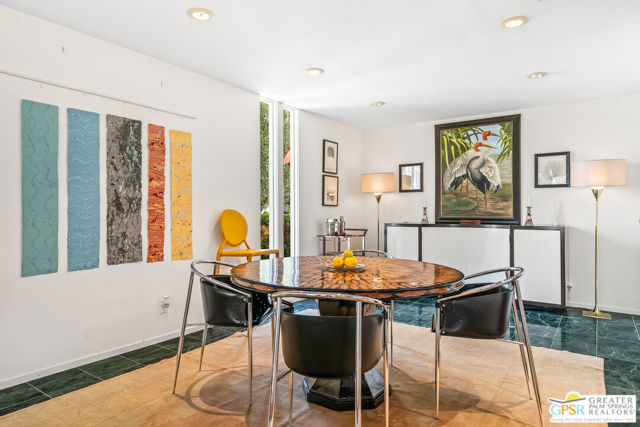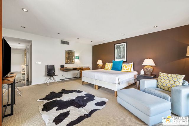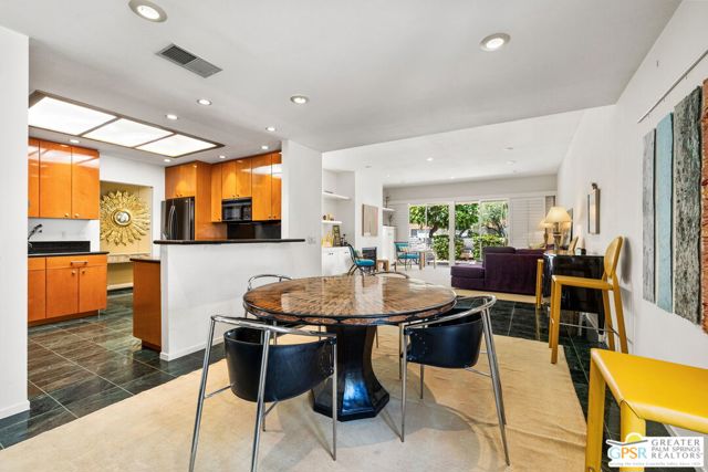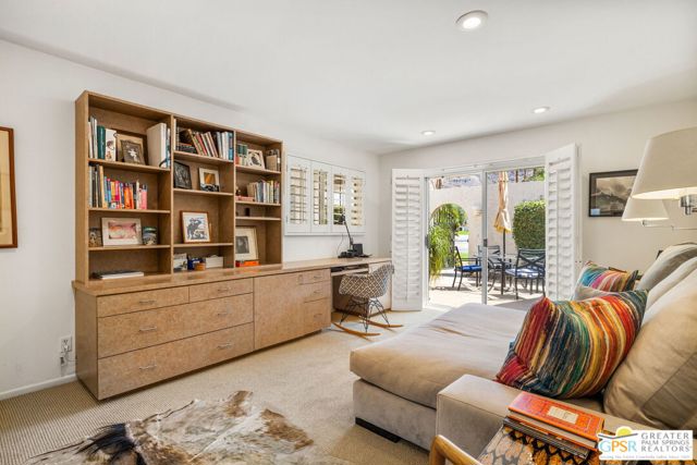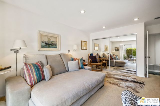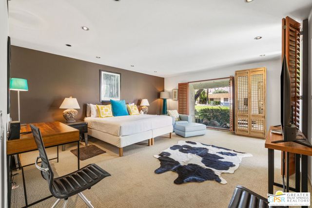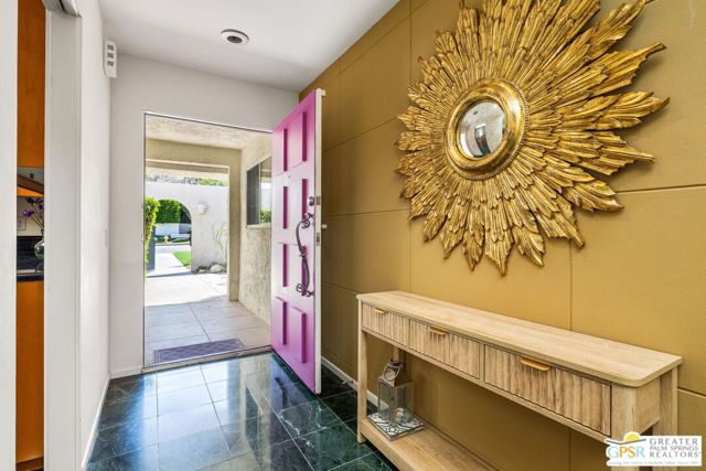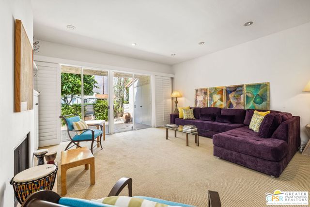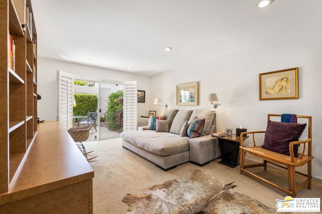 Surrounded by 360 of majestic mountain views, endless desert sky, and sunshine, this is one of the only 2 bed, 2 bath single-level condo that blends natural beauty with modern comfort. Just a short stroll to some of the best hiking trails in the Coachella Valley and minutes from downtown Palm Springs, you'll feel tucked away in your own desert retreat while staying close to all the action. Step inside and discover a bright open living space. The chef's kitchen, complete with sleek modern appliances, flows into an inviting dining area that's perfect for entertaining. The oversized primary suite showcases stunning mountain views, a large walk-in closet and a spa-like bathroom. A spacious guest room (currently styled as an office/den) adds flexibility for work or visitors as well as stunning mountain views towards the East. Enjoy quiet mornings in your private front courtyard, unwind in the lush back patio overlooking greenbelt lawns and soaring peaks, or start your day with a swim in the pool which is just steps from your patio. With an attached 2-car garage featuring plenty of storage and epoxy flooring, full laundry room and resort-style amenities including pool, spa, and tennis courts, this home is as practical as it is serene. This home is the only single story condo now available with beautiful views in Andreas Hills, call today for a private showing!