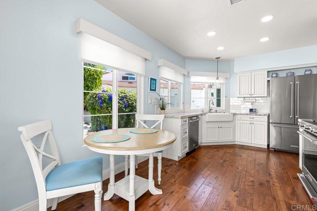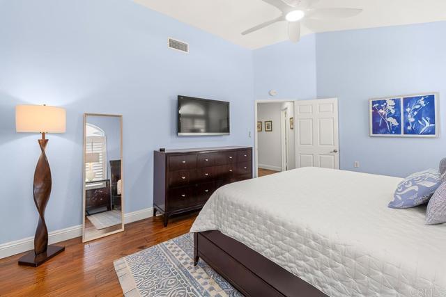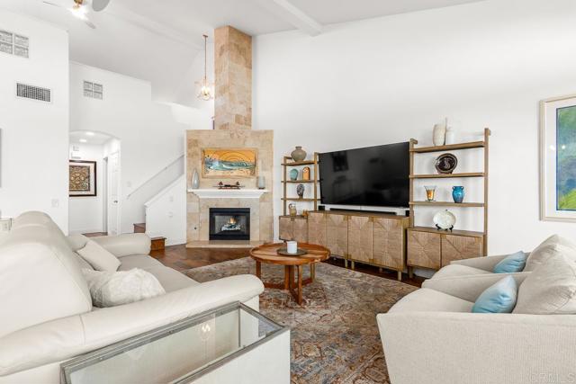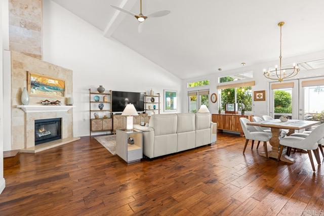 This beautiful move-in-ready, fully upgraded light bright single-level living home has the largest and most desired floor plan on a spacious pie-shaped lot perfect for entertaining in this gated 55+ community. It features a large great room with fireplace and high vaulted ceilings, 2 bedrooms with plantation shutters, and 2 full travertine baths on the main floor, a generous loft upstairs, often used as an office or an additional bedroom, central air conditioning and a whole-house-fan. The home has been completely upgraded with rich engineered hardwood floors, granite and newer cabinets in kitchen and bathrooms, stainless steel appliances, new paint and more. The kitchen has a profusion of natural light and affords beautiful green garden views. Three upgraded French doors connect you to the covered patio, hot tub and paver lined, beautifully manicured entertaining area. There is ample storage in the attached 2-car epoxy coated garage. Completely new roof in 2024. Conveniently located with easy 78 and I-5 freeway access, Making travel to San Diego, Orange County or LA easy. You’re also just minutes away from healthcare, your favorite stores, restaurants and just 4 miles to the beach. Mira Costa College is within walking distance for those who wish to join their lifelong learning programs. The Villa Trieste 55+ community is located in a world-class coastal climate, lies outside of the very high fire severity zone, keeping insurance costs low, is comprised of just 150 homes with lower HOA fees. The monthly HOA fees cover the gated entrance, roof, exterior, common area landscaping, pool, spa, clubhouse and bocce ball.