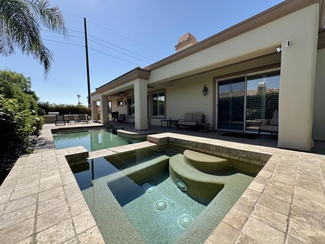 This stunning 3-bed/2.5 bath, 2129 SF house is the perfect place to embrace the desert lifestyle. It features a pool and spa with pebble tech, salt system and built in BBQ, island, with a sink. All of this in the private backyard and patio with rose bushes and fruit trees makes cooling down and enjoying the desert feel like a year round vacation. Additionally, this house has a 3-car garage and sits on a cul-de-sac. The house layout is a modern, open floor plan that highlights split bedrooms and a breakfast bar with easy access to the living room and home office. It also features stainless steel appliances, newer granite countertops, a newer sink and garbage disposal, newer lighting over the island area, newer washer and dryer, and a newer paint job throughout the house. This house is situated in one of Rancho Mirage's most desirable gated communities, La Terraza, which has low HOA, land ownership, and is centrally located between the I-10 freeway, Hwy 111, Eisenhower Hospital, El Paseo, The Shops at Palm Desert, Restaurants, and other key areas. The house has been professionally cleaned (including the windows), so it is ready to move in. Come see this gorgeous house today!