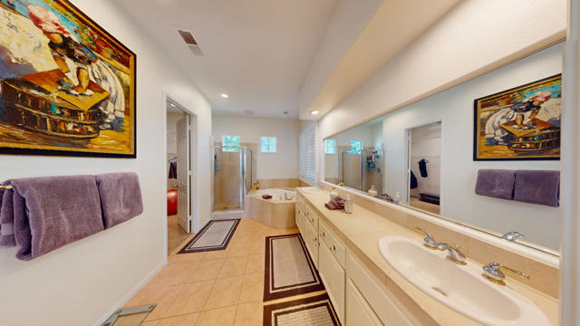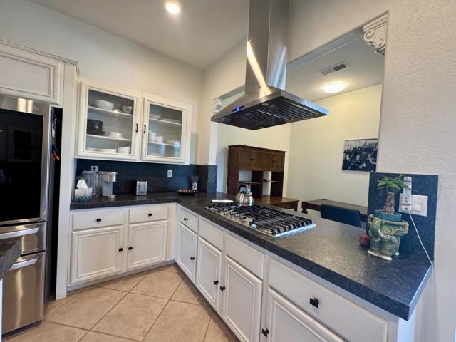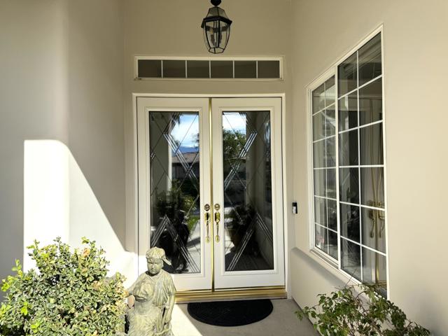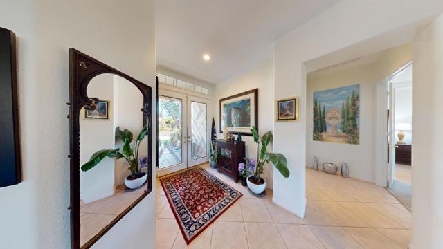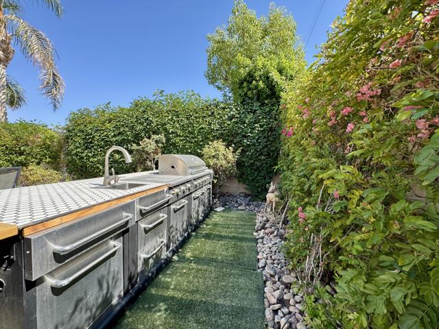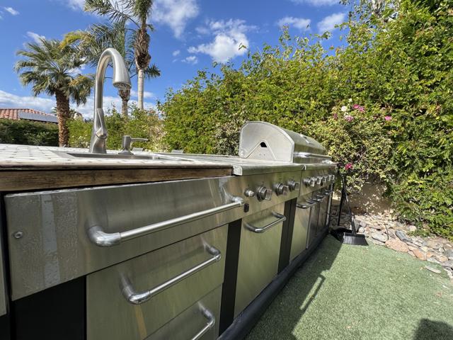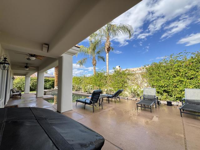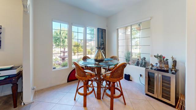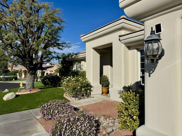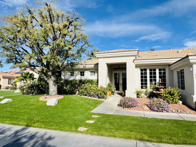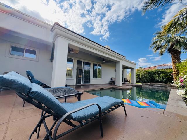 This remarkable 3-bed/2.5-bath/office home, 2129 SF, is the perfect place to embrace the desert lifestyle. It features a private backyard and patio with a pool and spa featuring Pebble Tech and a salt system, rose bushes, and fruit trees to cool off and enjoy the summer heat and festivities. Additionally, the house is equipped with a solar system and a Tesla battery, both completely paid off, has a 3-car garage, and sits on a cul-de-sac. The layout is a modern, open floor plan that highlights split bedrooms and a breakfast bar with easy access to the living room and home office. It also features stainless steel appliances, newer granite countertops, a newer sink and garbage disposal, newer lighting over the island area, newer washer and dryer, and a newer paint job throughout. Additionally the exterior of the house has been freshly painted. This house is situated in one of Rancho Mirage's most desirable gated communities, La Terraza, which has low HOA fees and is centrally located between the I-10 freeway, Hwy 111, Eisenhower Hospital, El Paseo, The Shops at Palm Desert, restaurants, and other key areas, and is ready to move in. Come see this stunning house today!