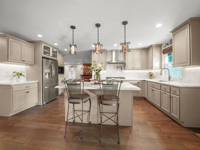 Exquisitely remodeled Home on the Foothills of East San Jose. Rare one story 2,100 sq ft home on a 9,086 sq ft corner lot offers a functional & spacious floor plan. Featuring 2 master bedrooms for a total of 4 beds & 3 baths. Kitchen beautifully remodeled with newer cabinets, stainless steel appliances, modern brushed nickel finishes, elegant quartzite countertops & tile backsplash. Bathrooms completely remodeled with newer tiles, modern vanities, newer toilets & fixtures. Large master suite with wet bar area, walk-in closet, dual vanity & sizable modern shower. Two bedrooms offer doors to spacious back yard making it ideal for a home office or ADU potential. Spacious laundry room with plenty of storage & practical countertop area. Attached two car garage offers additional storage. Ample, open family room & dining room area with high ceilings & doors to spectacular covered patio. Huge backyard is an entertainers dream with lush grass areas, newer concrete & custom built serving area perfect for hosting. This enormous, corner lot offers convenient RV access, detached shed & low maintenance front yard. New roof, copper pipes and hardwood flooring amongst many more upgrades. This pristinely maintained property exudes traditional luxury & is ready to become the perfect HOME!!