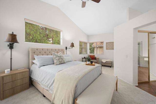 Beautifully ReStaged. This is a Wonderful home in a very friendly and desirable neighborhood. This house is on a cul de sac and in a quiet part of the community. Largest lot in Promenade. Sellers have taken great care of their property and the kitchen and bathrooms have been updated. Large master bedroom with sitting area and nice walk in closet, plus an open office loft area or if enclosed an additional bedroom, and two guest bedrooms with Plantation shuttered window treatments. Freshly painted interior, Newly installed neutral carpeting upstairs and new laminate vinyl flooring throughout the main living area. Very expansive. Retractable custom shades on main living area and the sliding door has inset canting mini shade system. Tankless water heater in garage and a half bath down. Inside laundry with side by side washer and dryer. Lots of storage space. Producing Avocado and Pecan trees. Property would also make an excellent investment property. Close by a home is renting for $5,200 monthly short term.