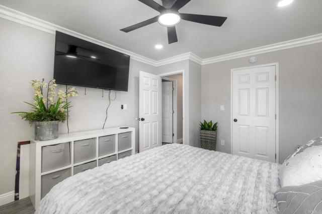 VA approved, LOCATION! LOCATION! Carlsbad School District!!! LIVES LIKE A SINGLE FAMILY HOME! Prime Oceanside location, corner unit. Beautifully updated single-story home featuring an electric start fireplace, elegant crown molding through and recessed lighting that enhances the bright and inviting interior. The open layout flows seamlessly to French doors leading to the side yard, creating the perfect indoor-outdoor connection for relaxing or entertaining. Master bedroom has ceiling fan that can be controlled by a click of a button, leads you into a walk in closet and bathroom was tastefully remodeled. The home faces Thunder Drive with easy street parking, Laundry room door has a code that only the 4 units share (HOA has approved units to add own laundry inside the unit). A one car garage is located behind the complex. It's pride of ownership shines throughout this move-in-ready residence, offering the feel of a single family home. Enjoy an unbeatable location within the highly sought-after Carlsbad School District, just minutes to the 78 freeway, shopping centers, Costco & Costco Gas, Legoland CA theme park (for short stay) and everyday conveniences. Oceanside Beach is only a 10–15 minute drive away, making coastal living easily accessible. VA financing accepted.