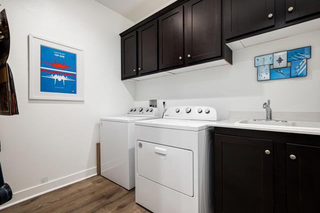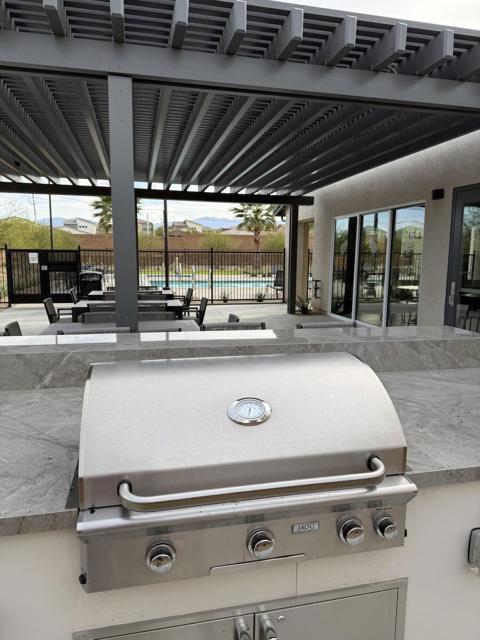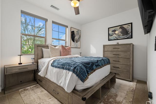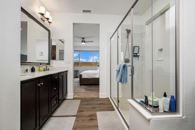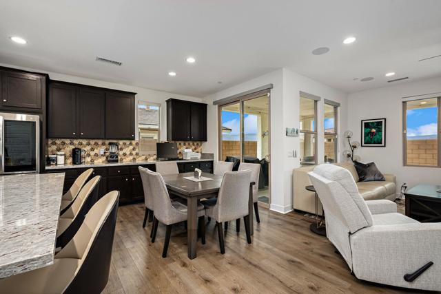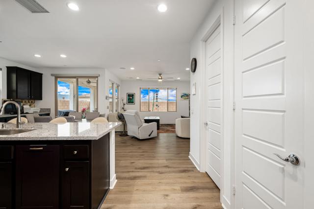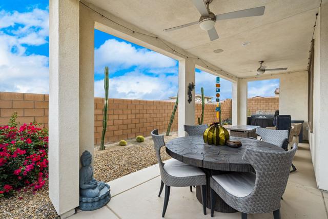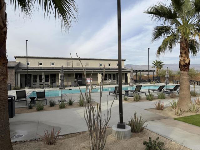 Owned Solar and all furnishings available! Seller is motivated. Welcome to Sage Palm Desert! Built in 2021 by Ponderosa Homes, this beautifully maintained single-story residence offers the benefits of newer construction without the wait. With the option of being fully furnished, this home provides a move in ready experience. The thoughtfully designed 3-bedroom floor plan showcases warm tones and modern finishes throughout. The open-concept living area flows seamlessly into a spacious kitchen featuring upgraded stainless steel appliances and a large island--ideal for both everyday living and entertaining. The large private primary suite features backyard views, dual vanity sinks, and a generous walk-in closet. Additional highlights include vinyl wood-look flooring, marble countertops in the kitchen and bathrooms, extended kitchen cabinetry, Milgard windows, new window coverings, and electric vehicle charging in the garage. Enjoy OWNED SOLAR for energy efficiency and low electric costs, along with a smart home system and wired alarm. Peek-a-boo mountain views from the main living area and patio elevate the living space. The backyard is designed for year-round enjoyment with a wraparound covered patio, ceiling fans, and low-maintenance landscaping. Sage Palm Desert is a gated community featuring a completed resort-style clubhouse with a pool, spa, and fitness center, offering a true desert lifestyle. Seller is willing to sell the home furnished or unfurnished making it a great second home or investment opportunity!