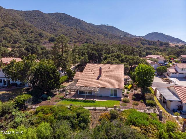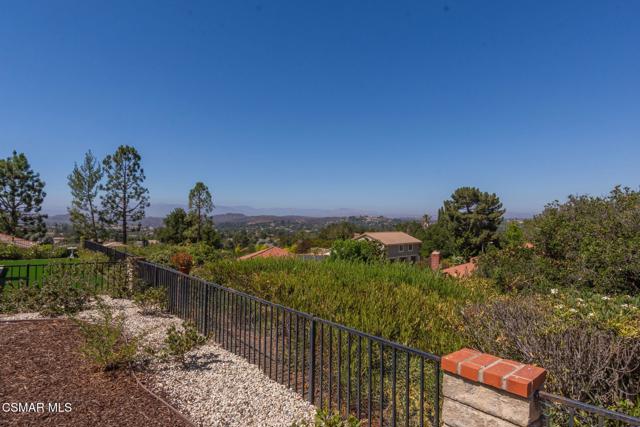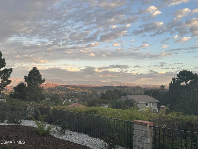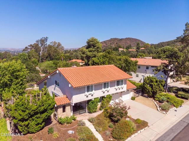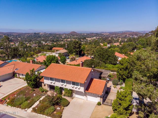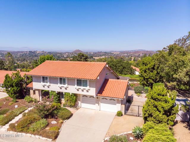 VIEWS VIEWS VIEWS! Located on the crown of Hickory Grove Drive, in the desirable Lynn Oaks tract, this four bedroom, three bathroom home has unprecedented panoramic views of the Conejo Valley and surrounding wildlife. The open floorplan includes living room with vaulted ceiling, formal dining area with direct access to the backyard, and a downstairs bedroom. The kitchen was updated with oak cabinetry, recessed lighting and beautiful views from the garden window. There is a separate family room with large sliding glass doors bringing the outdoors in. Upstairs are three additional bedrooms including the primary suite with a walk in closet and direct access to attic storage space. Features include inside laundry room with washer & dryer, newer HVAC and dual pane windows. Enjoy endless views and breathtaking sunsets from the beautifully landscaped backyard with paver stone patio, patio cover, grass area and a colorful variety of flowers and plants. Attached two car garage with possible RV access. Located in the award winning Conejo Valley School District, just around the corner from a beautiful park that includes playgrounds, running track, soccer field, sand volleyball court, basketball court and picnic tables. Enjoy the many miles of nearby hiking & mountain bike trails the Conejo Valley has to offer. In close proximity to shopping, restaurants, freeway access. and accredited colleges & universities. This well loved home has been meticulously maintained and is ready for your cosmetic updates to make it your own.