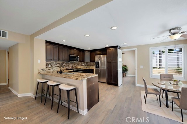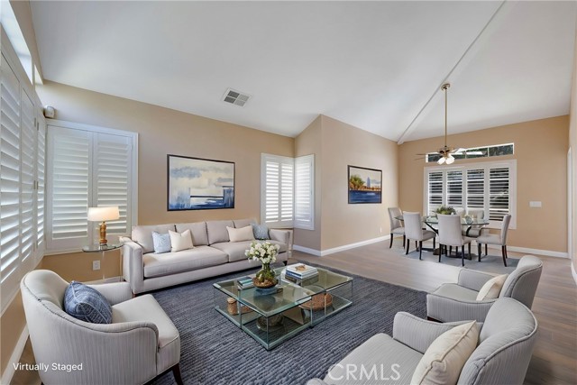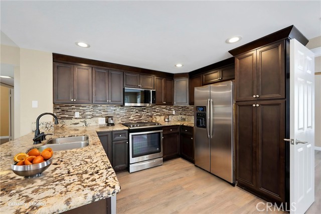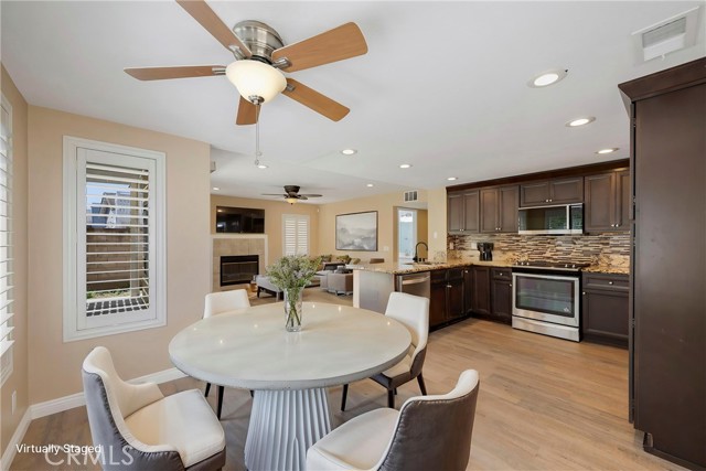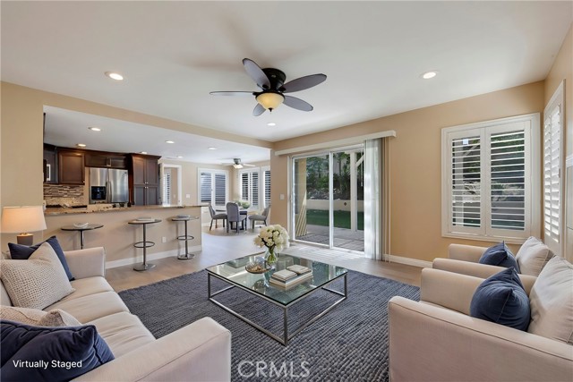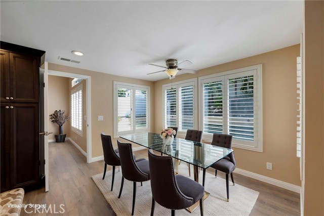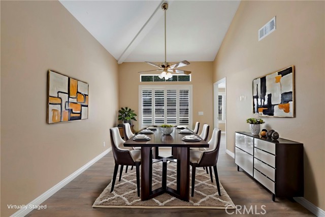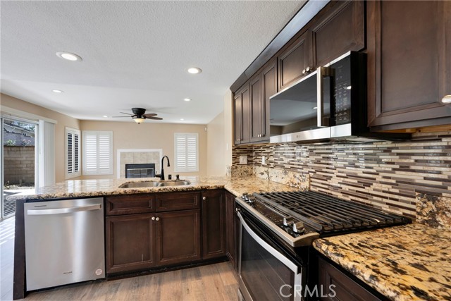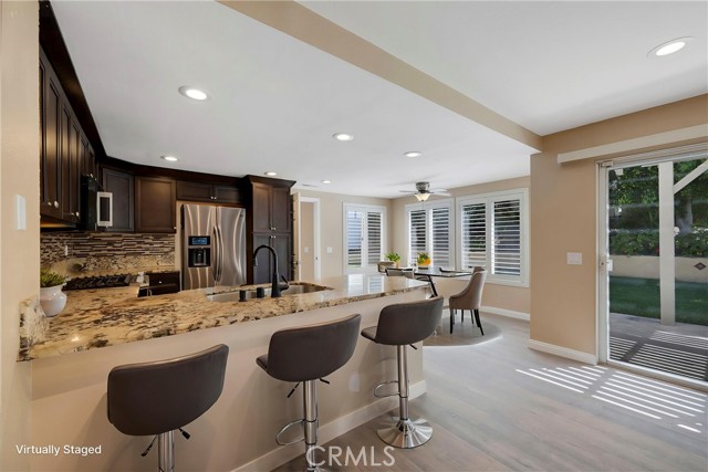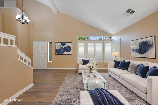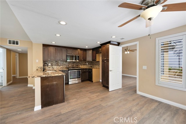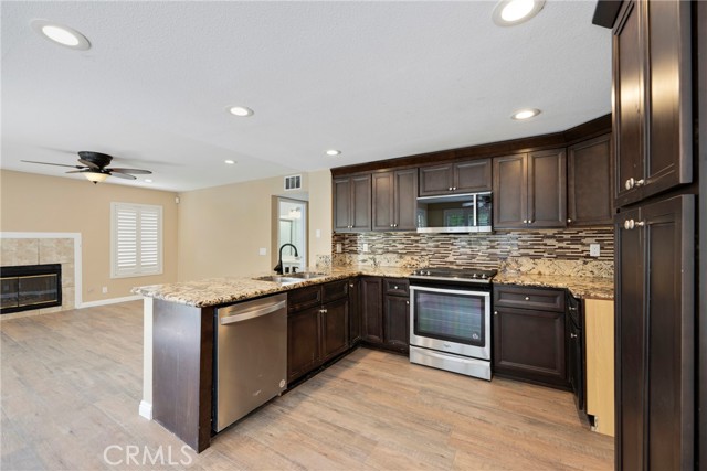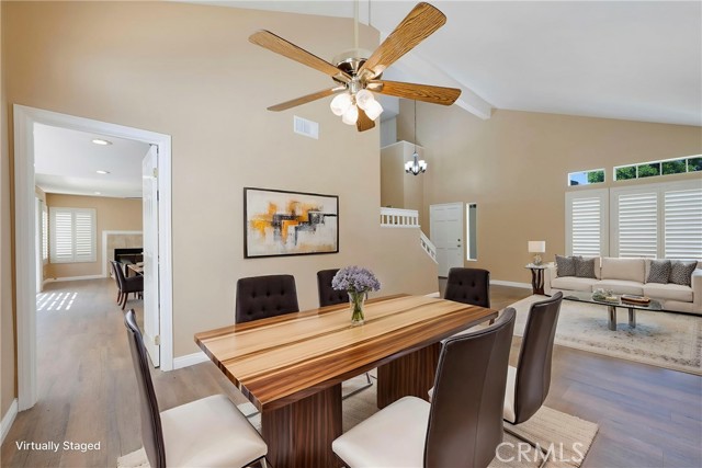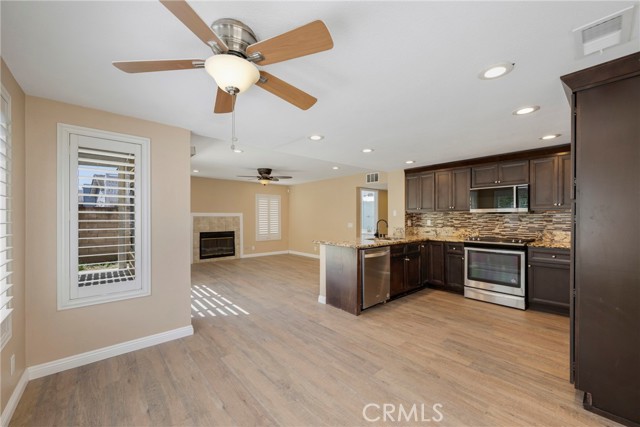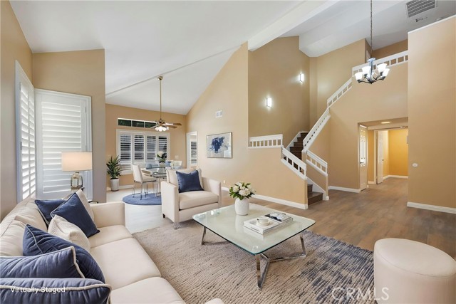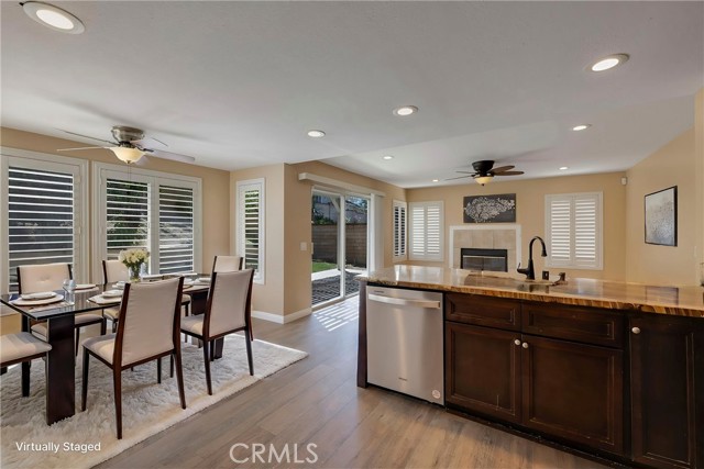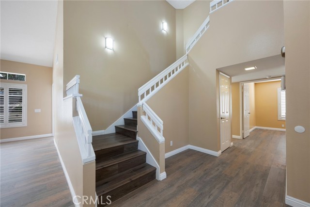 This 4 BEDROOM and 3 FULL BATH home in SIERRA DEL ORO boasts a 3 CAR ATTACHED GARAGE with direct access into the LAUNDRY ROOM. This home features 1 BEDROOM and 1 BATHROOM on the first floor of this two story home. It features NEW VINYL FLOORING downstairs, and is FRESHLY PAINTED. The FORMAL DINING area is off the living room both boasting high CATHEDRAL CEILINGS. The KITCHEN with ABUNDANT CABINETRY boasts GRANITE COUNTERTOPS, freestanding STAINLESS STEEL, and RECESSED LIGHTING, and overlooks the FAMILY ROOM with a FIREPLACE with a slider to the backyard. All windows have SHUTTERS. Mountain view from front two guest bedrooms. Easy access to 91 and 71. Located on the Border of Orange County, it’s just off GREEN RIVER EXIT OF 91.