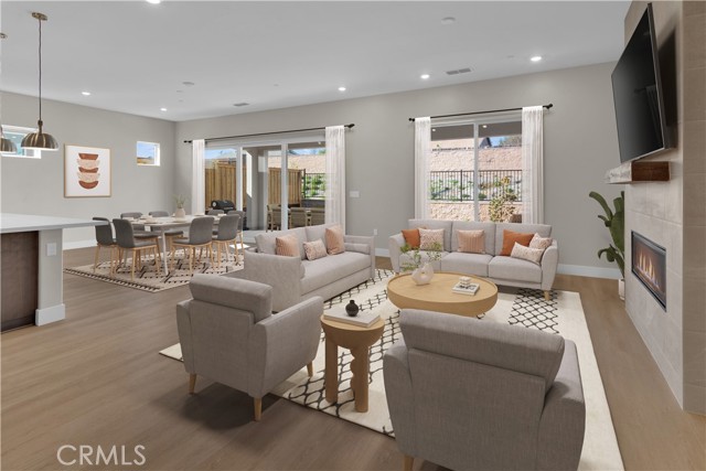 Immerse yourself in the relaxed elegance of Paso Robles wine country with this beautifully designed Liberty II home while visiting Nevina, a 55+ community. The gourmet kitchen is a true centerpiece, featuring upgraded quartz countertops, an elegant tile backsplash, premium KitchenAid stainless steel appliances, and sophisticated smoked gray stained cabinetry. A dramatic rolling wall at the dining room extends the living space to a covered patio with gas BBQ stub, while an interior fireplace with mantel adds warmth and ambiance, creating the perfect setting for both entertaining and quiet evenings. The private primary suite offers a serene retreat, highlighted by tall windows and a spa-inspired bath with quartz counters, a tiled shower with frameless glass, and Shea Shower. Designer details elevate the home throughout, including luxury vinyl plank flooring in main living areas, plush carpet in bedrooms, upgraded tile baths, two-tone interior paint, and 5½" baseboards. With laundry cabinetry and sink, brushed nickel accents, and energy-efficient LED lighting, this move-in ready residence combines style, comfort, and modern function. Nevina™—a Trilogy® Boutique Community™ offers more than a home—it’s a lifestyle thoughtfully designed for those seeking connection, wellness, and enjoyment. With an additional membership, residents can experience exclusive resort-style amenities, a planned vibrant clubhouse, and spaces that bring neighbors together. All of this is complemented by Paso Robles’ signature charm—rolling vineyards, culinary treasures, and breathtaking scenery—making wine country living truly unforgettable.