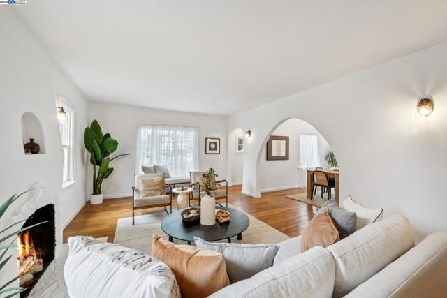 Priced Transparently! With a huge backyard oasis and the lively Laurel District just blocks away, this beautifully upgraded 2+BD/1BA Mediterranean home, complete with a full basement, offers an easy California lifestyle in the heart of the city. The enchanting 1232 SQFT home enjoys fine architectural details and lives large, with lovely indoor/outdoor living. This oversized outdoor oasis features a large pergola and deck, patio with fire pit, and expansive space ready for your imagination or potential ADU. Relax in the living room in front of the vintage fireplace while sun streams from multi-pane windows. Beautiful hardwood floors flow through a graceful arch and into the dining room. The adjacent eat-in kitchen has been stylishly renovated with new appliances, cabinets, and countertops. Drink your morning coffee in the sunny breakfast nook, or step out back to dine al fresco, unwind, garden, or play with family and friends. Two bright bedrooms share a full bath. One bedroom features a backyard view, while the primary suite offers two roomy closets and a great office space behind French doors. The lower level includes a laundry area, interior access to the 1-car garage, and an exterior basement entry. Out your front door, enjoy dining, shopping, gyms, and easy commuter access.