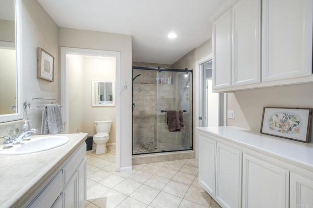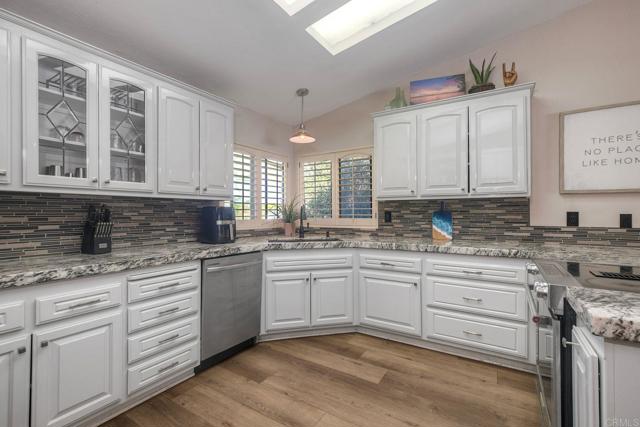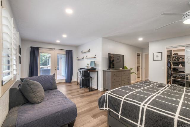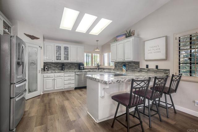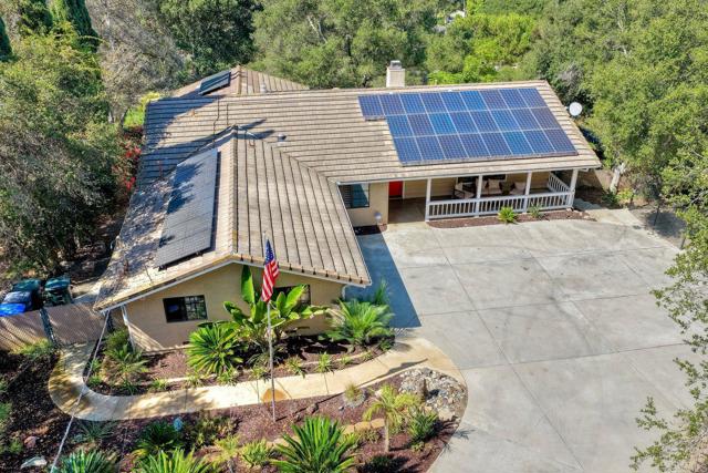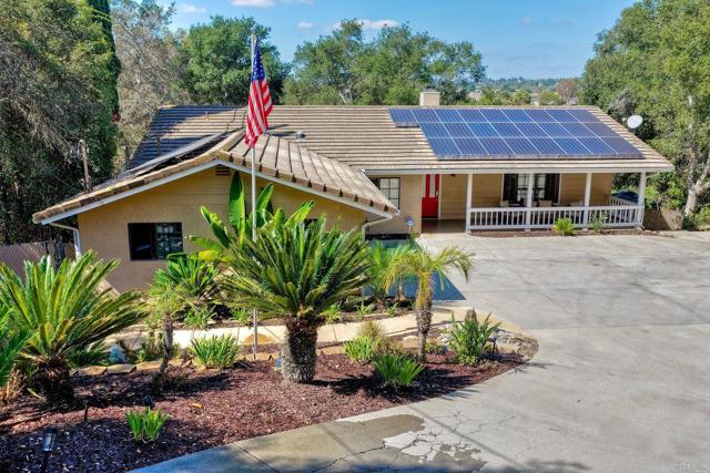Nestled behind private gates on a sprawling 1-acre lot, this Fallbrook home offers the perfect blend of comfort, style, and functionality. All three main bedrooms and two full bathrooms are on the main floor, creating true single story living with vaulted ceilings, skylights, and an open, natural light floor plan. The modern kitchen features granite countertops, stainless steel appliances, and a lighted walk-in pantry, flowing seamlessly into the family and living areas. Beneath the home, a fully finished guest suite provides over 400 sq/ft of additional living space, complete with a kitchenette, bonus room, full bathroom, and private access; ideal for guests. Outside, enjoy mature fruit trees, terraced landscaping, views from multiple patios, including the outdoor spa. A stacked stone fireplace, abundant storage, and thoughtfully designed indoor-outdoor flow complete this exceptional home. Experience privacy, versatility, and the beauty of Fallbrook living.